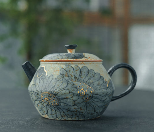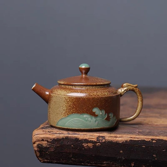 Lotus Pattern Vocanic Stone-Inspired Caramel Glaze Vintage Teapot