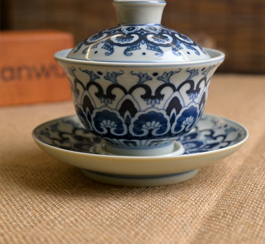 The Blue and White Lotus Pattern Gaiwan Jingdezhen Qinghua Tea Bowl