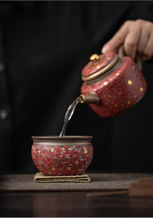 Handmade Rock Mineral Colored Rough Porcelain Gold-Painted Tea Cup