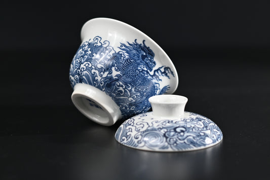 Jingdezhen Hand-carved and Hand-Painted Dragon Clay Gaiwan