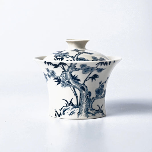 Jingdezhen Handmade Blue and White Baoxiang Gaiwan Set