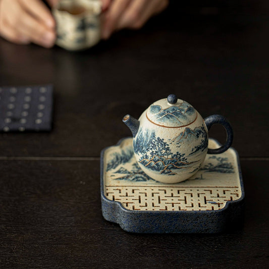 Wabi-Sabi Rough Pottery Teapot & Stove Set