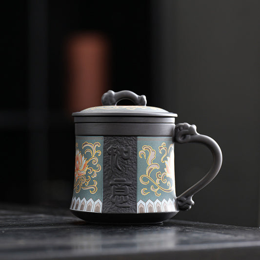 Purple Clay Royal Lotus Patterned Tea Cup +Tea Can