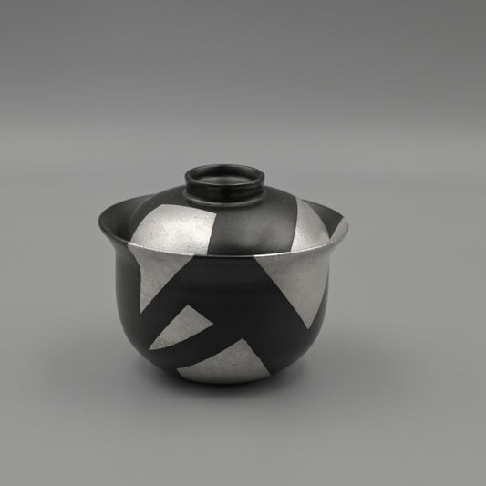 Unique Piece Silver-glazed Irregular Geometric Black-and-white Pattern Gaiwan (Tea bowl)