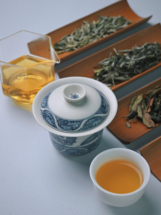 Jingdezhen Handcrafted Blue-and-White 'Scholar's Treasure' Three-Piece Gaiwan Set