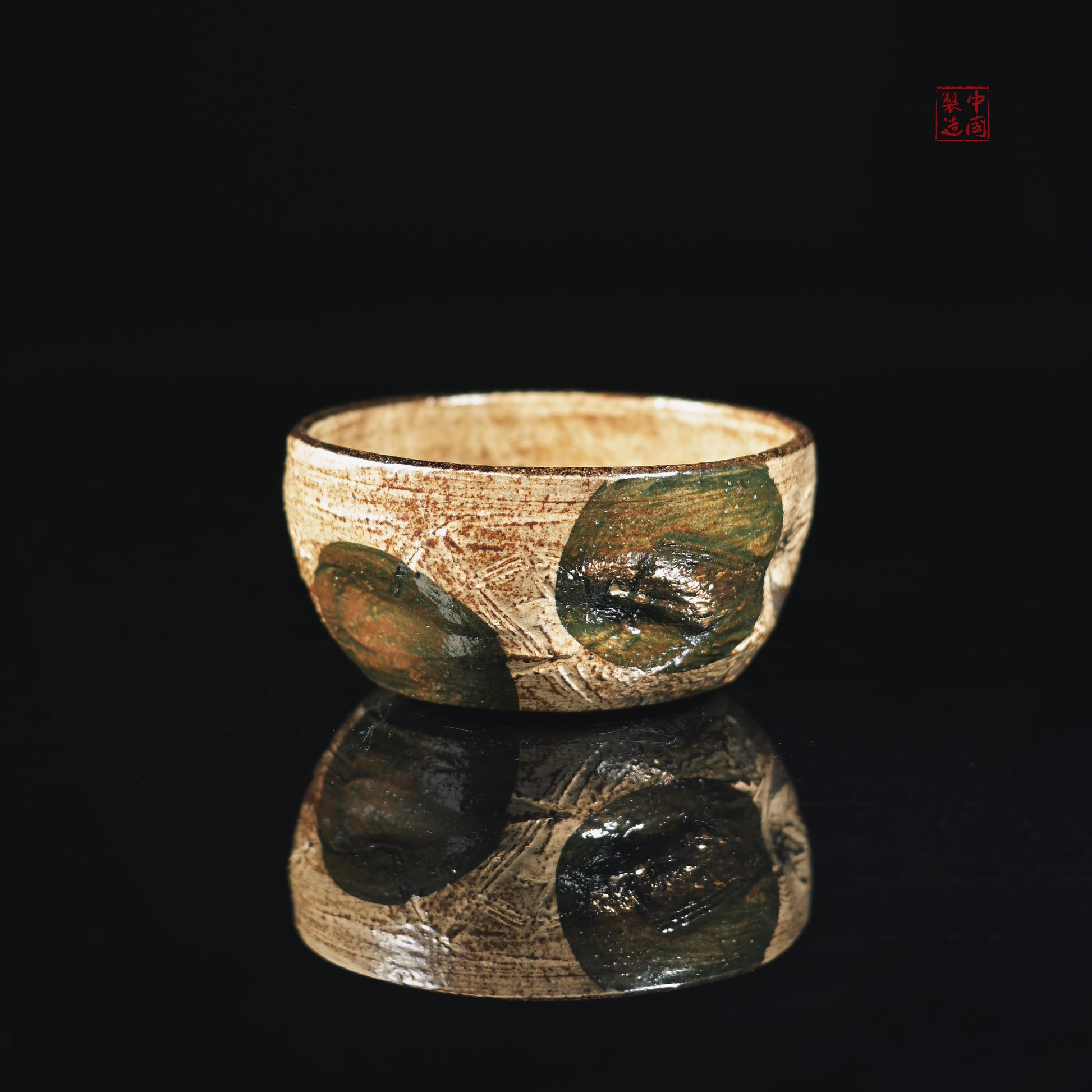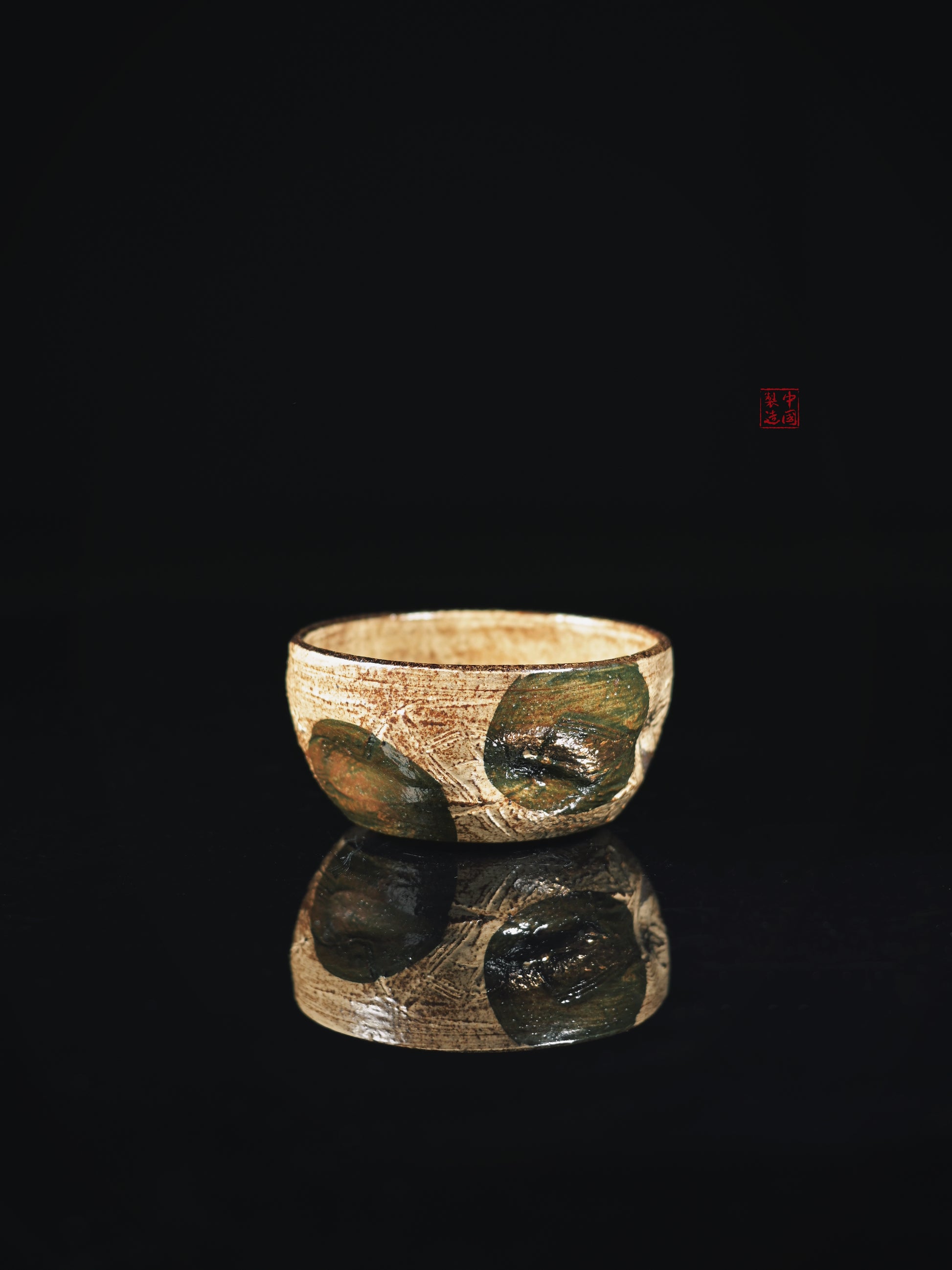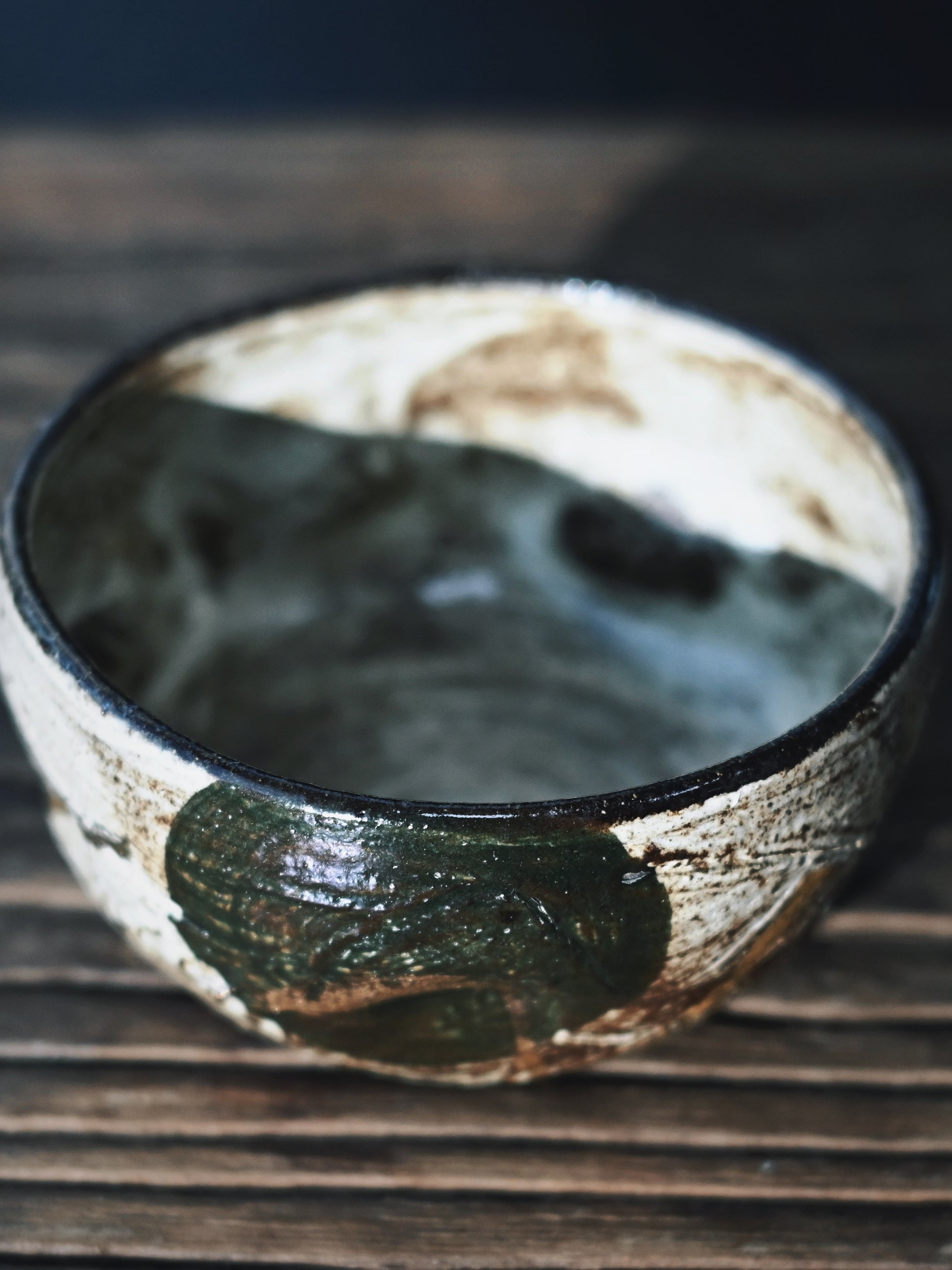 Japanese-style (Kohiki) white glaze (70% coverage for intentional negative space)