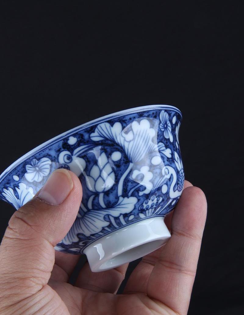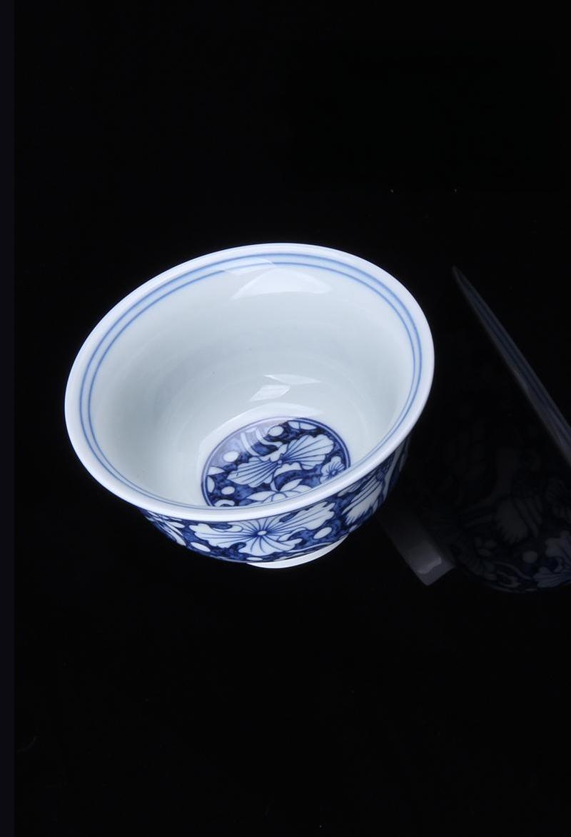 Blue and White Porcelain Host's Teacup with Lotus Pond and Egret Design