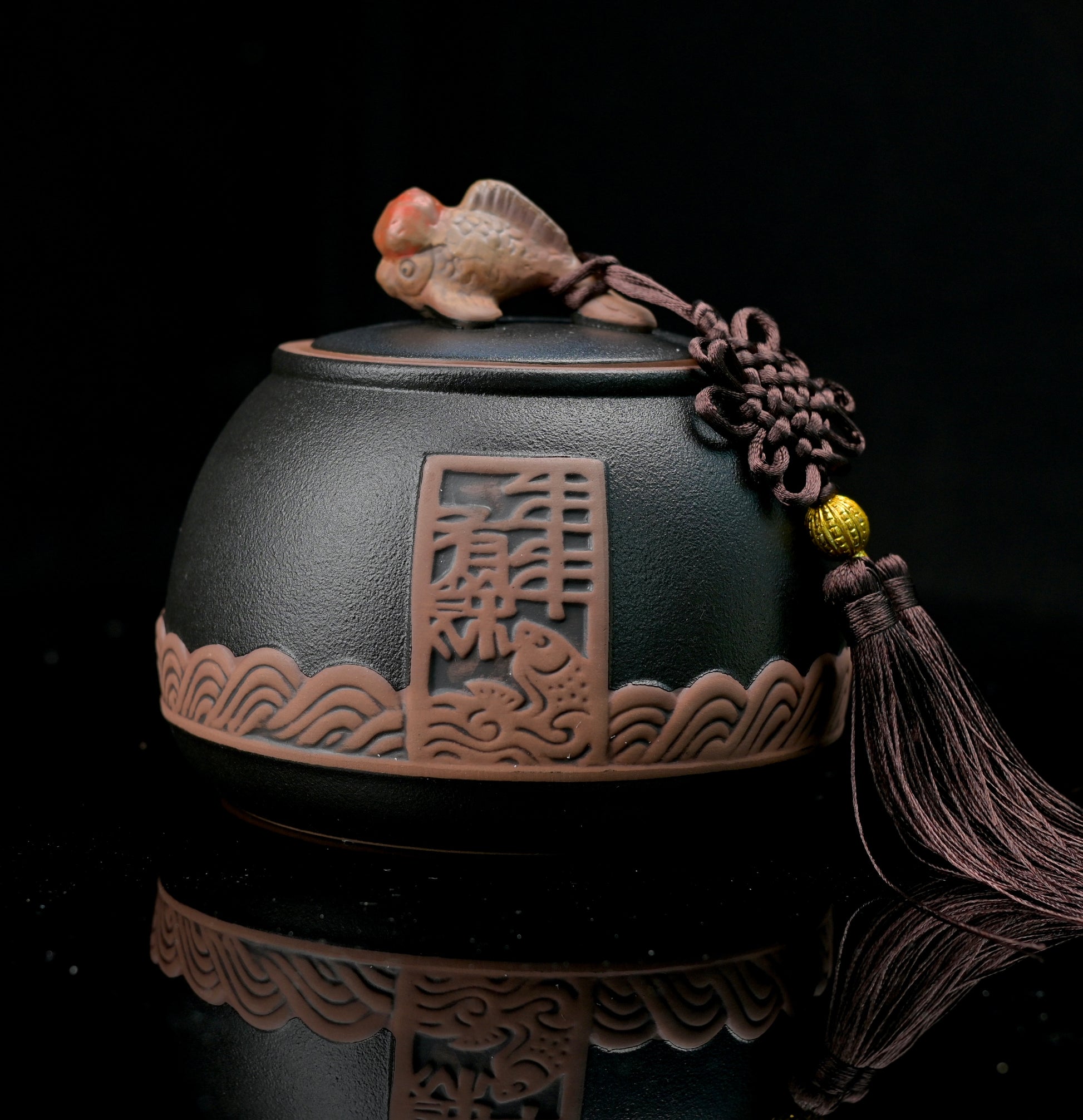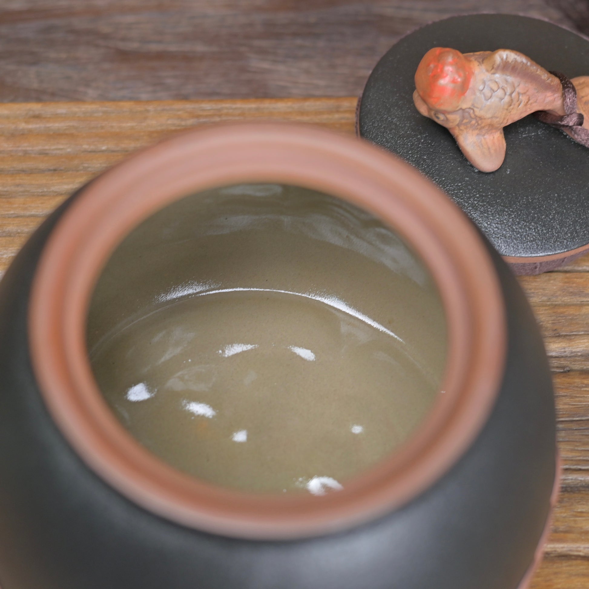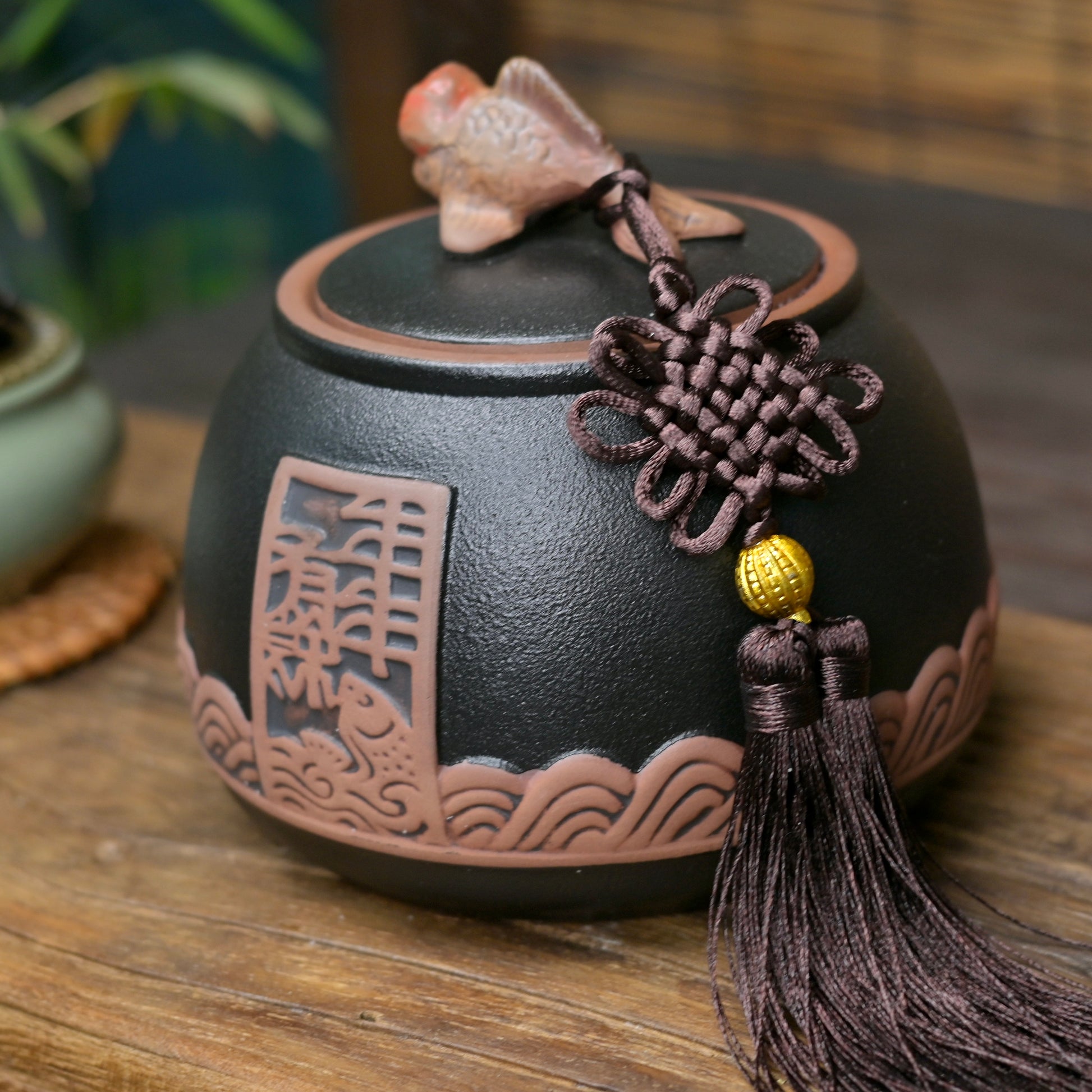 This Chinese retro "Year of Abundance" coarse ceramic tea caddy perfectly blends traditional craftsmanship with cultural symbolism, serving as both a practical tea storage solution and an exquisite piece of home art.