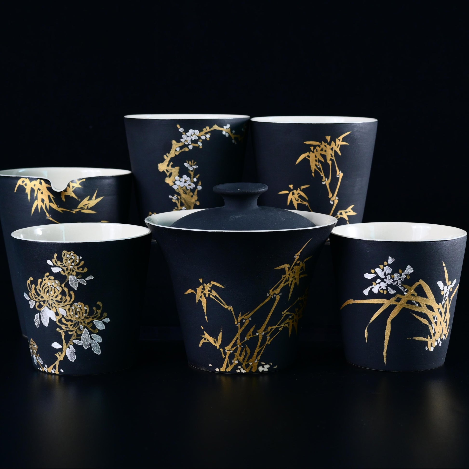 The charm of matt black glaze lies in its unique texture and visual effects. It can add layers and depth to ceramic works, making them more tactile and visually appealing. Matt black glaze reflects ambient light and produces subtle changes, making ceramic works more vivid, rich, and captivating. - The plum blossom, bamboo, orchid, and chrysanthemum have been called the "Four Gentlemen" since ancient times. These four plants have always been loved by people for their elegant and unassuming appearance, and they have also become a cultural symbol of personality and virtue, known as the "Four Gentlemen". The qualities of these plants are: pride, seclusion, firmness, and simplicity.