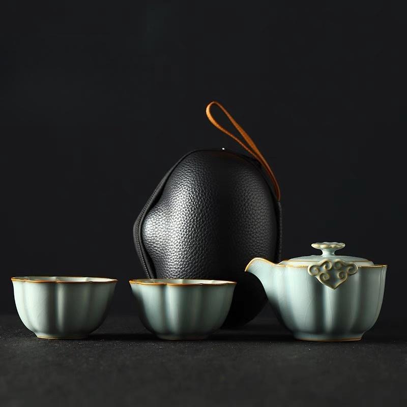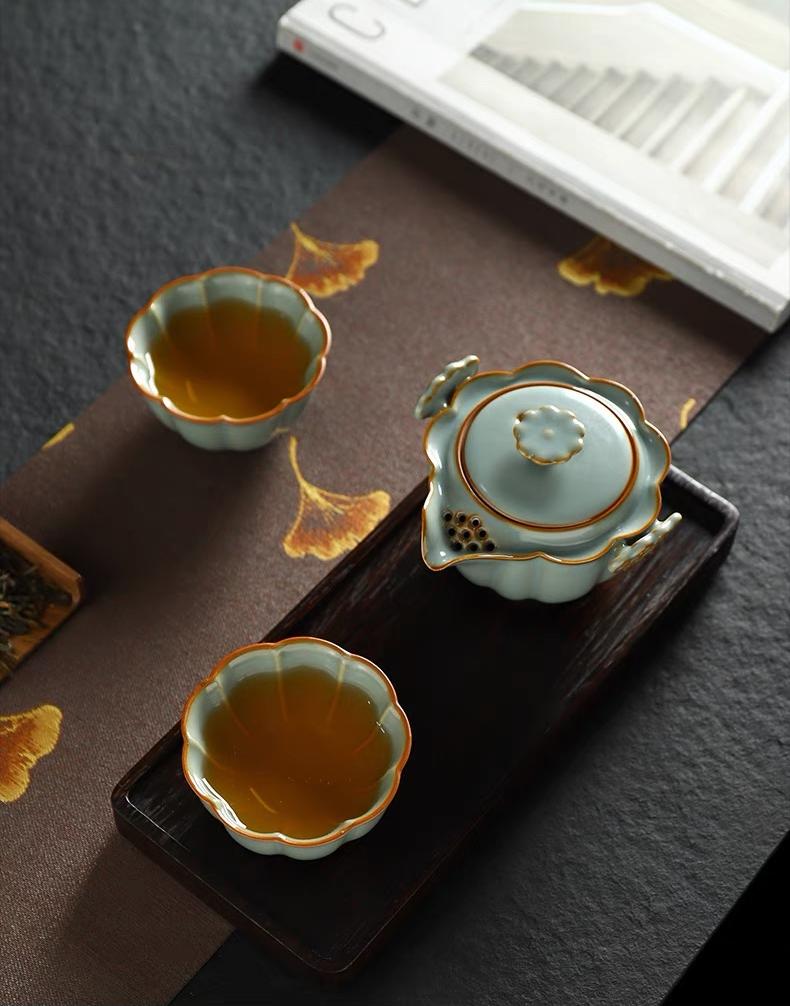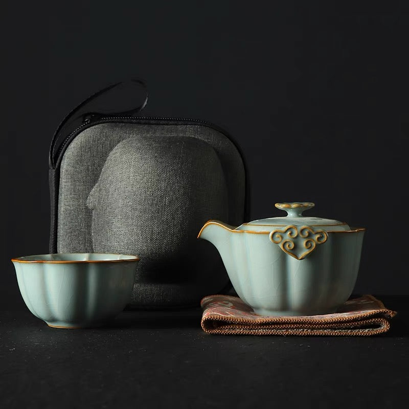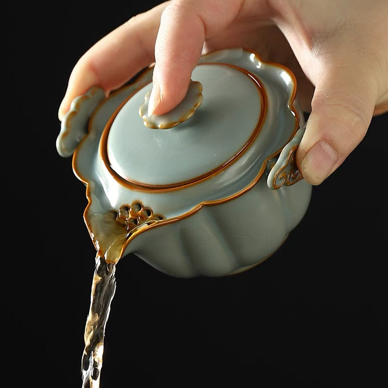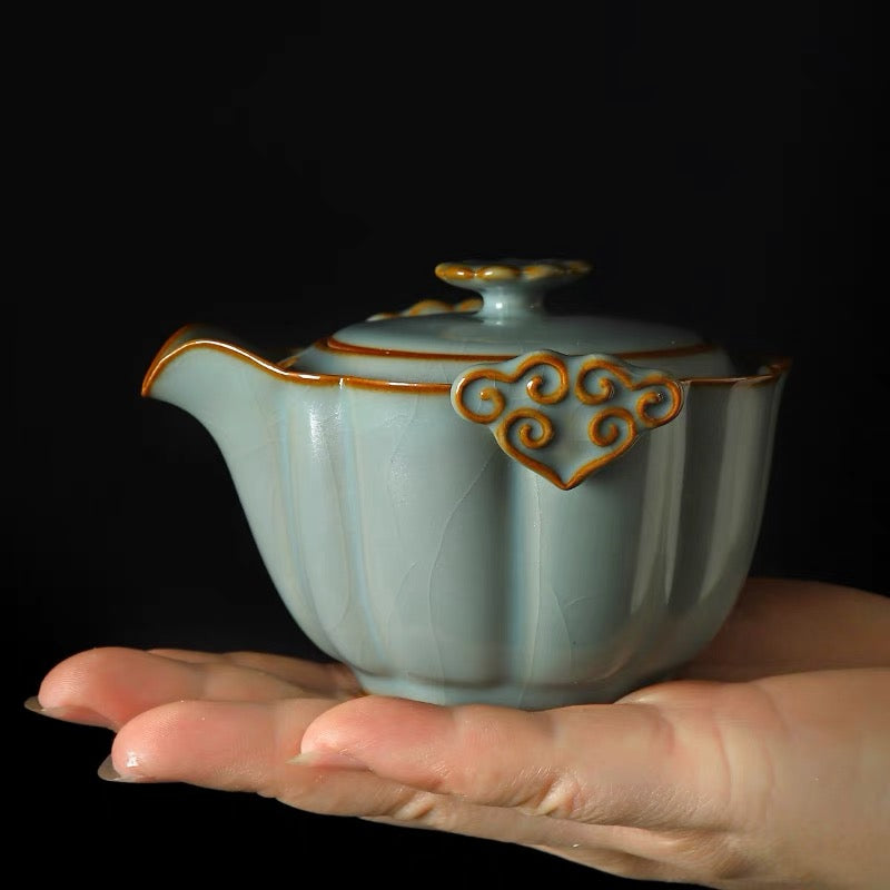 Gray-Blue Ru Kiln Ruyi Hand-Grip Teapot / Tea Sets
