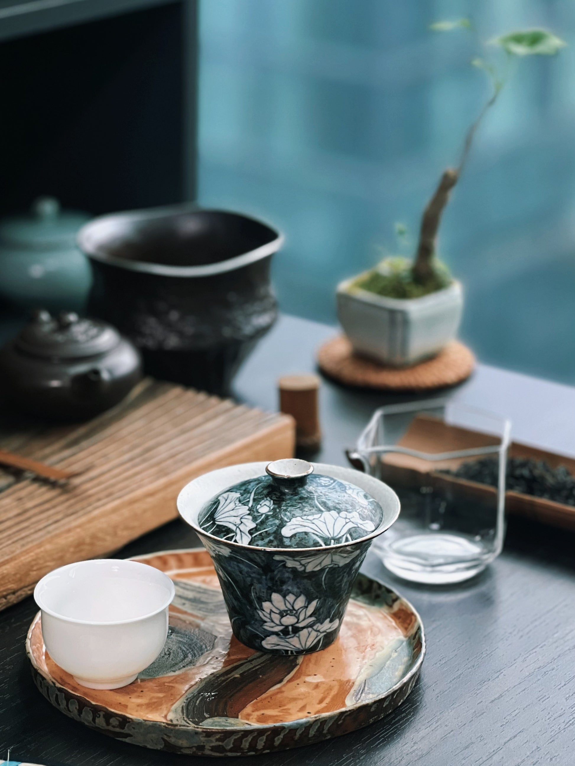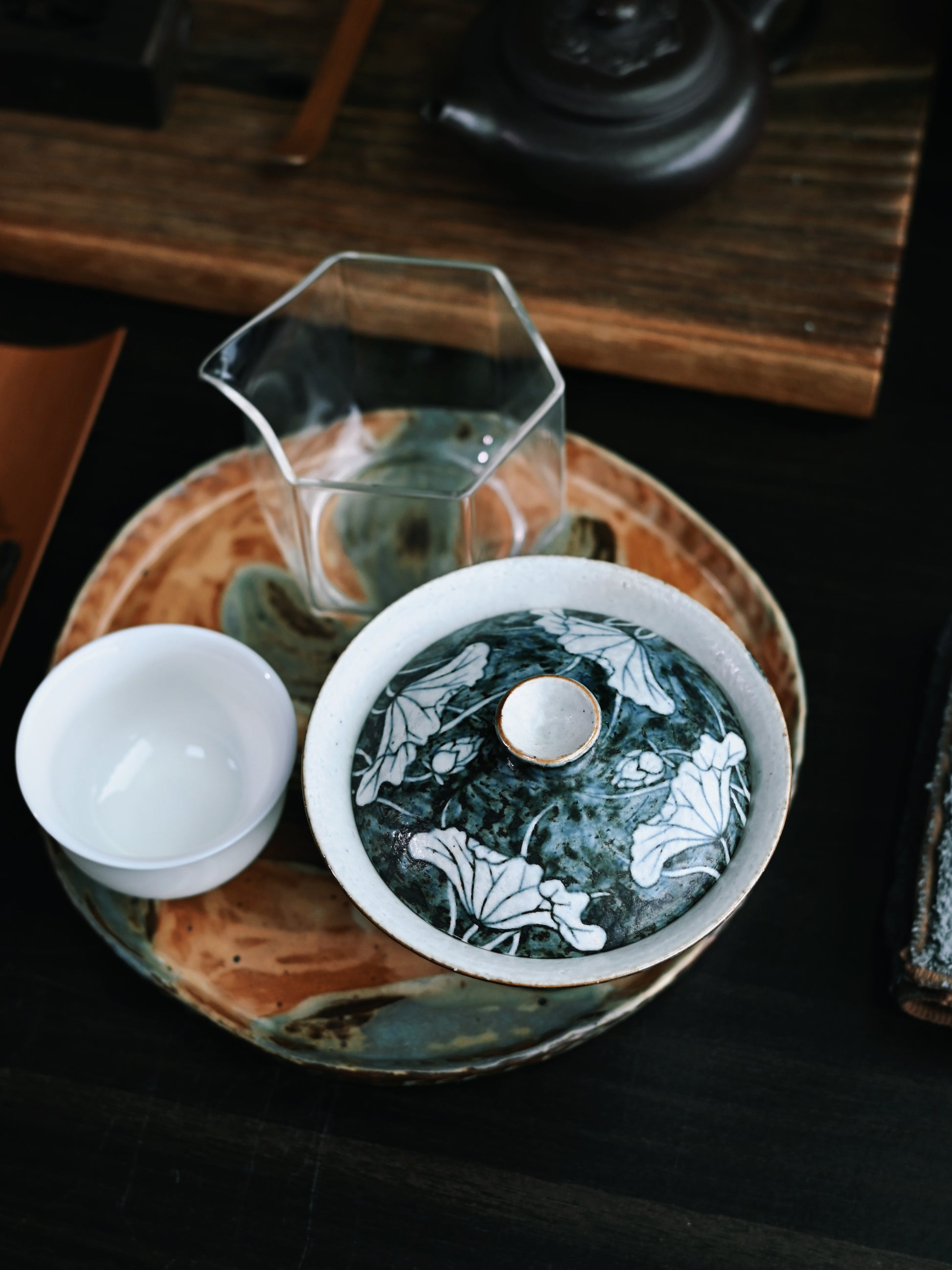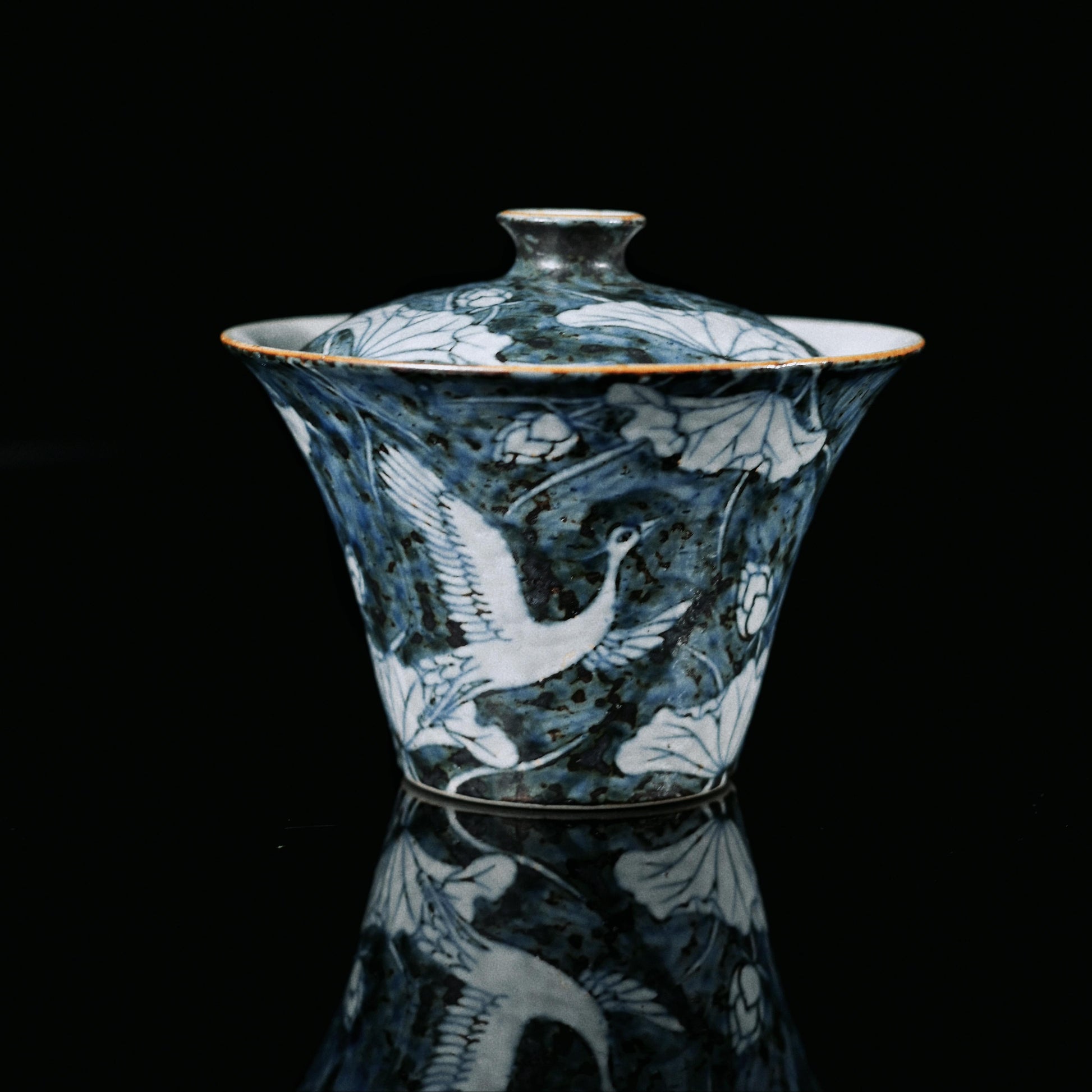 This Hand-Painted Kohiki Gaiwan embodies the serene beauty of a summer lotus pond, where elegant egrets wade through cobalt-blue waters. Meticulously crafted in Jingdezhen using century-old techniques, each piece is a functional canvas blending Chinese brush painting with Japanese kohiki aesthetics.