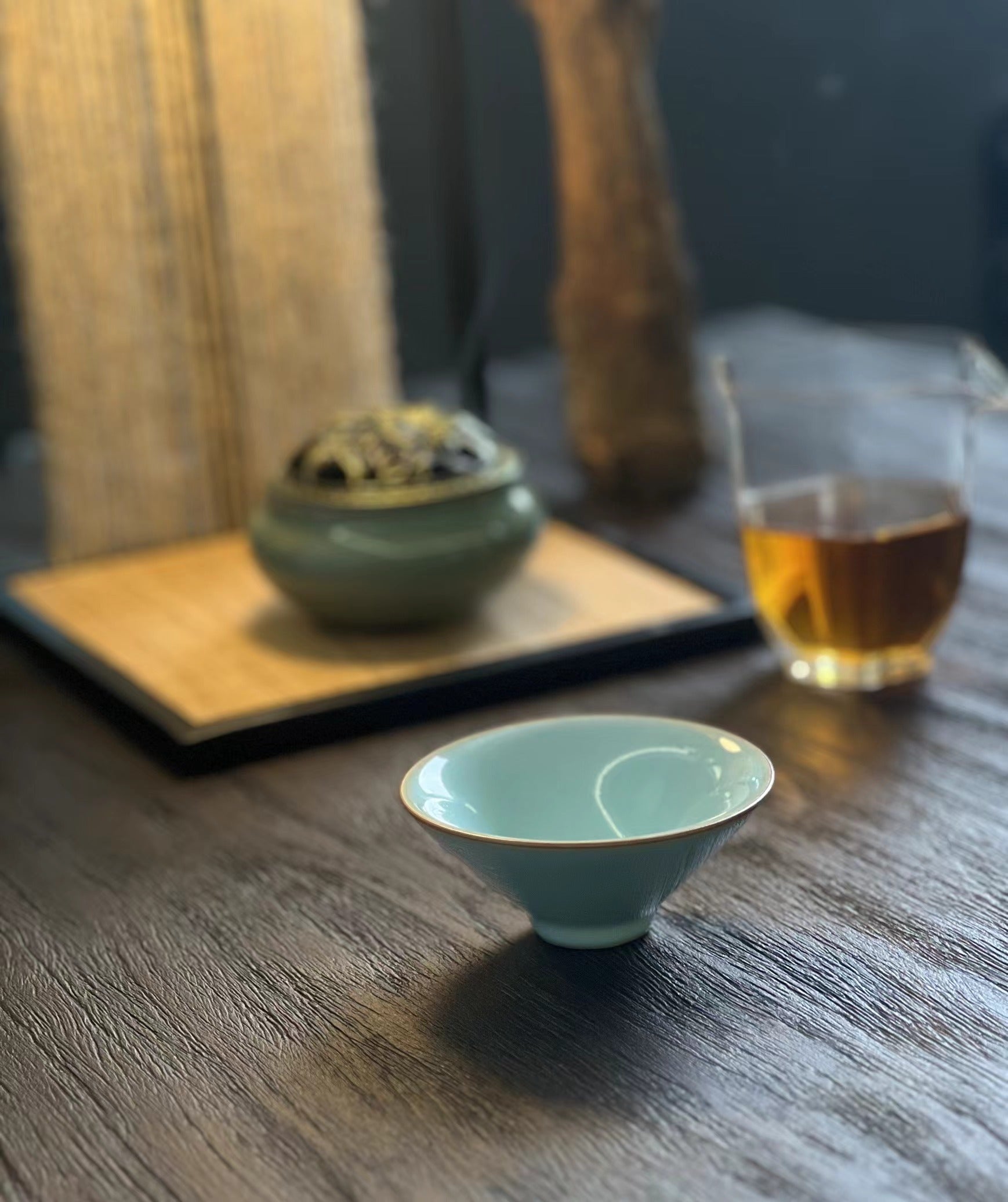 The Ru Kiln teacup, renowned for its unique sky-blue glaze and jade-like texture, is considered a treasure in ceramics. In ancient times, Ru Kiln teacups were exclusively used by royalty, and ordinary people rarely had the chance to see them. The production process is extremely complex, requiring high levels of skill and rich experience at every stage, from selecting the clay, refining it, shaping, to firing. The glaze color of Ru Kiln teacups is created by a unique chemical reaction between the iron elements in the glaze and the reduction atmosphere at high temperatures, giving each teacup its one-of-a-kind color.