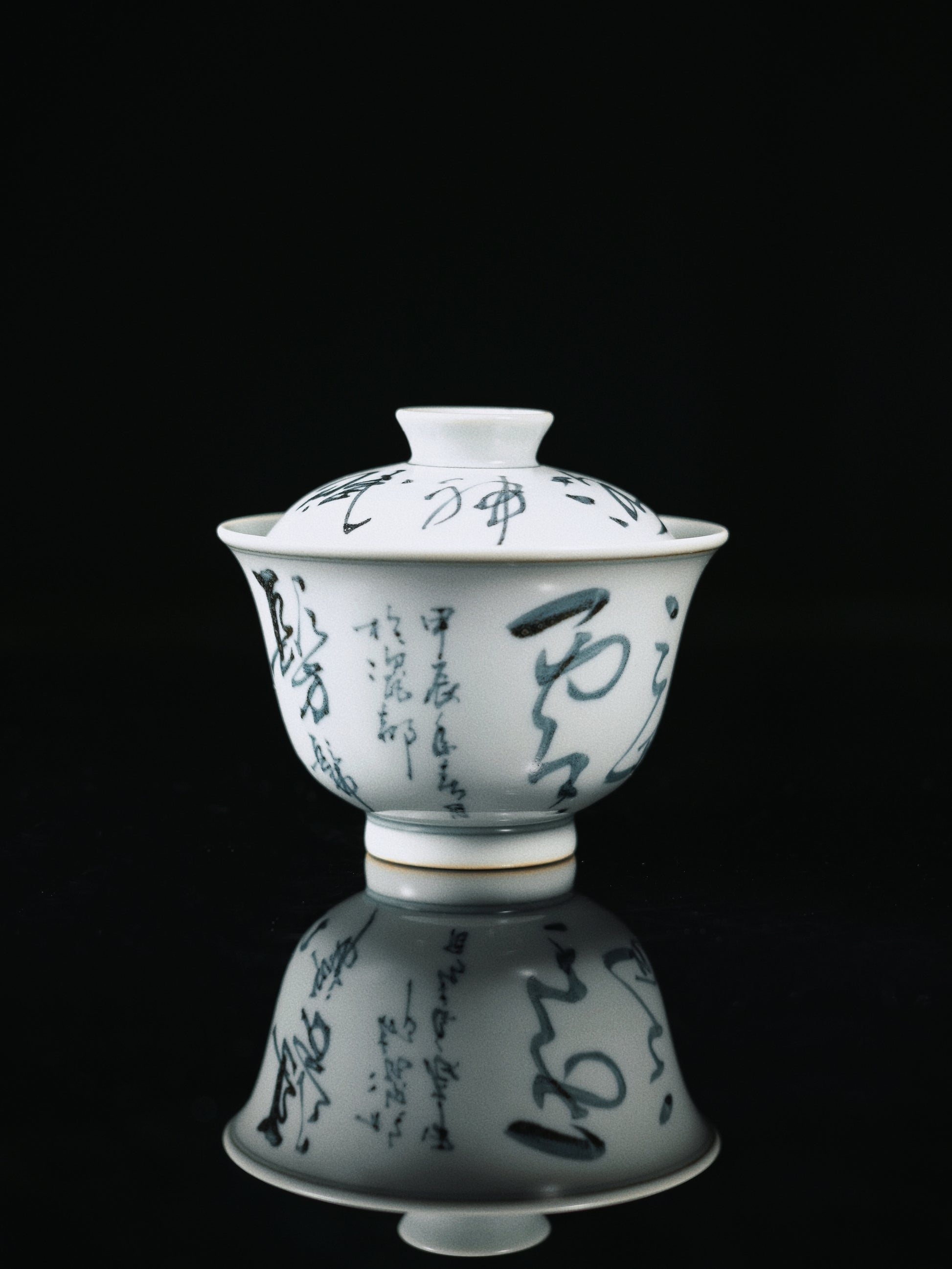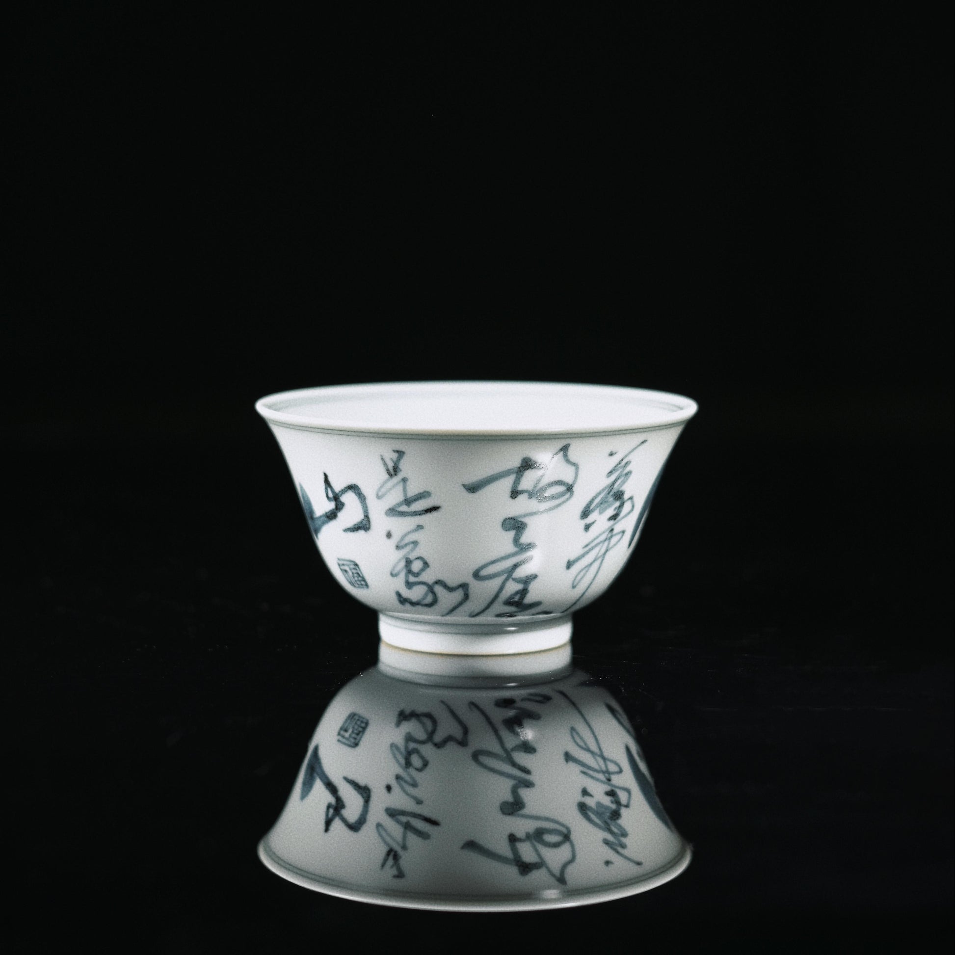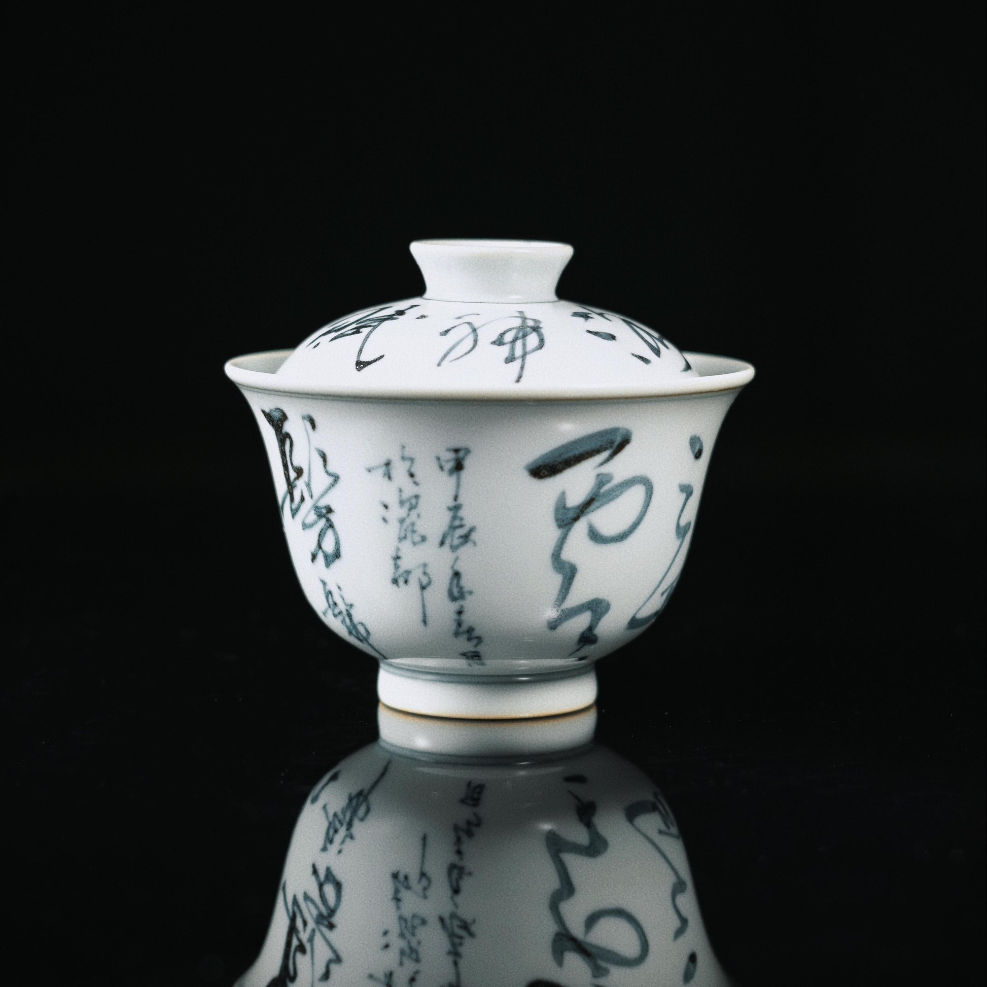 Jingdezhen Blue-and-White Hand-Writing Poetry Calligraphy Gaiwan Set