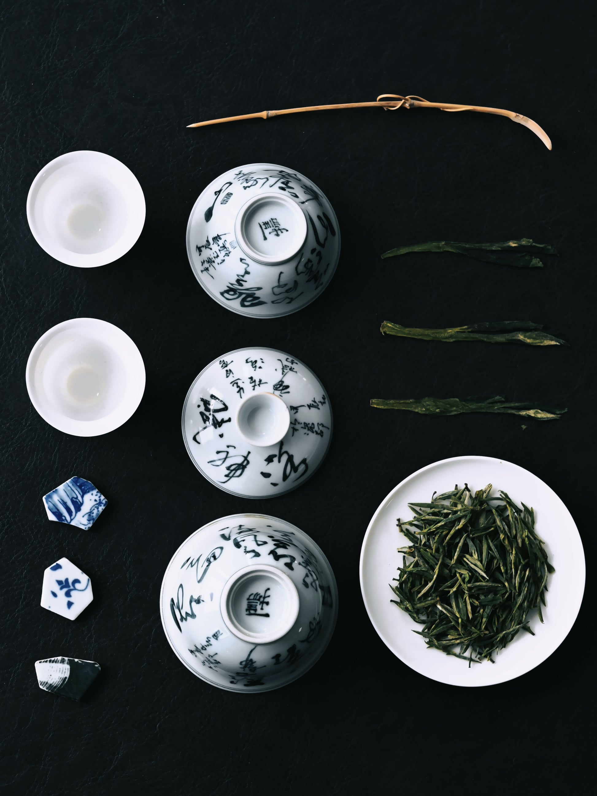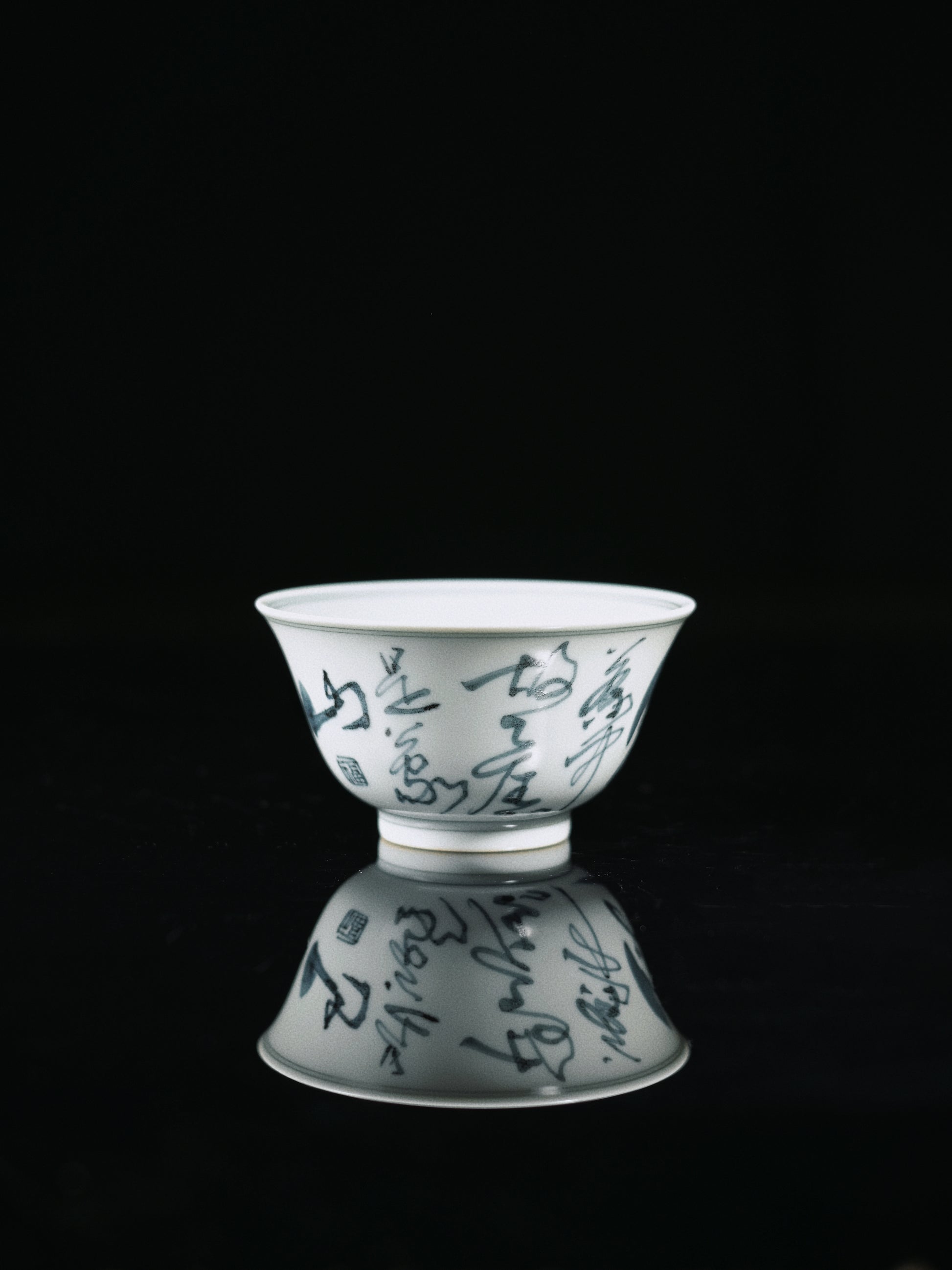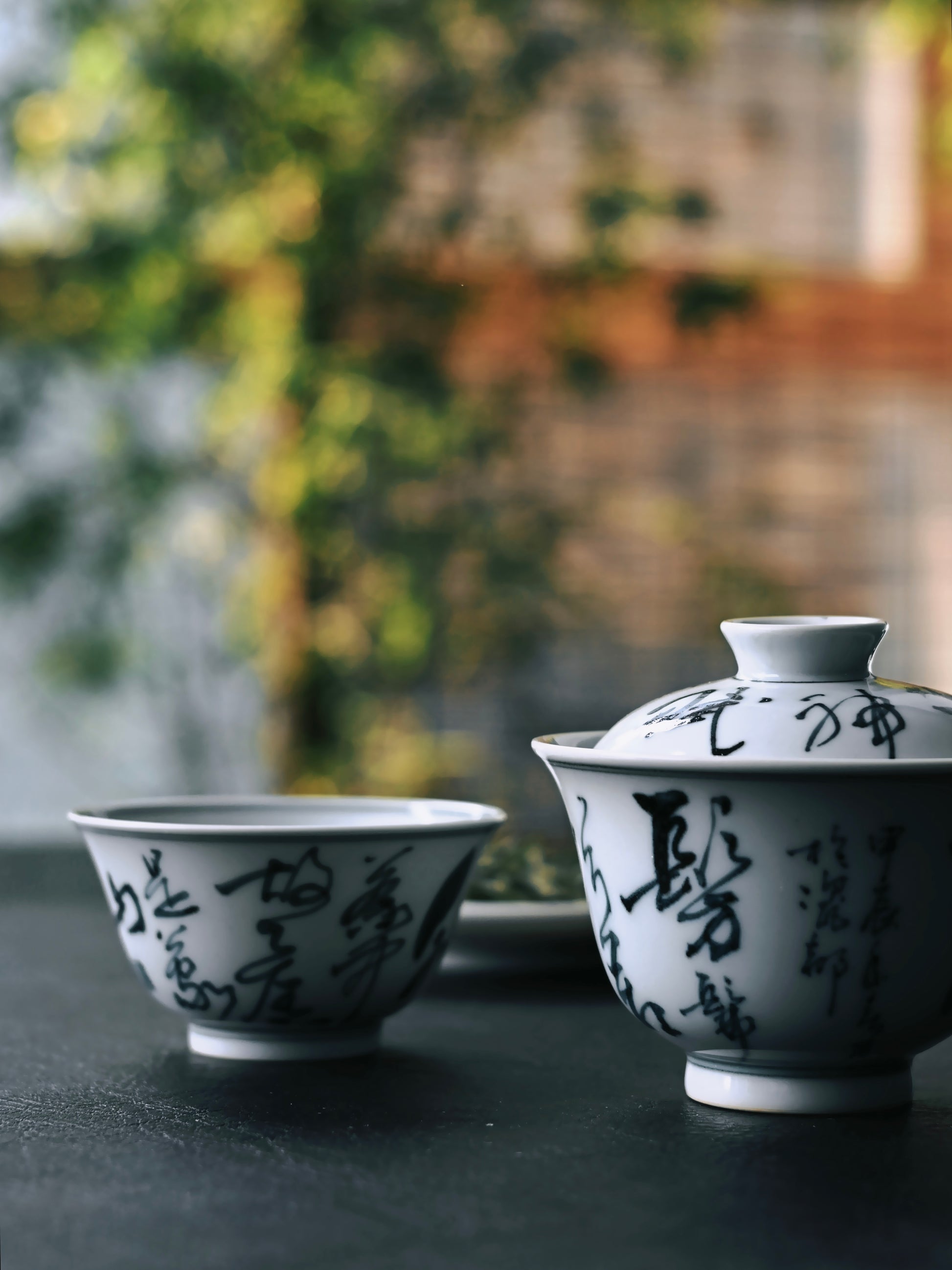 Jingdezhen Blue-and-White Hand-Writing Poetry Calligraphy Gaiwan Set