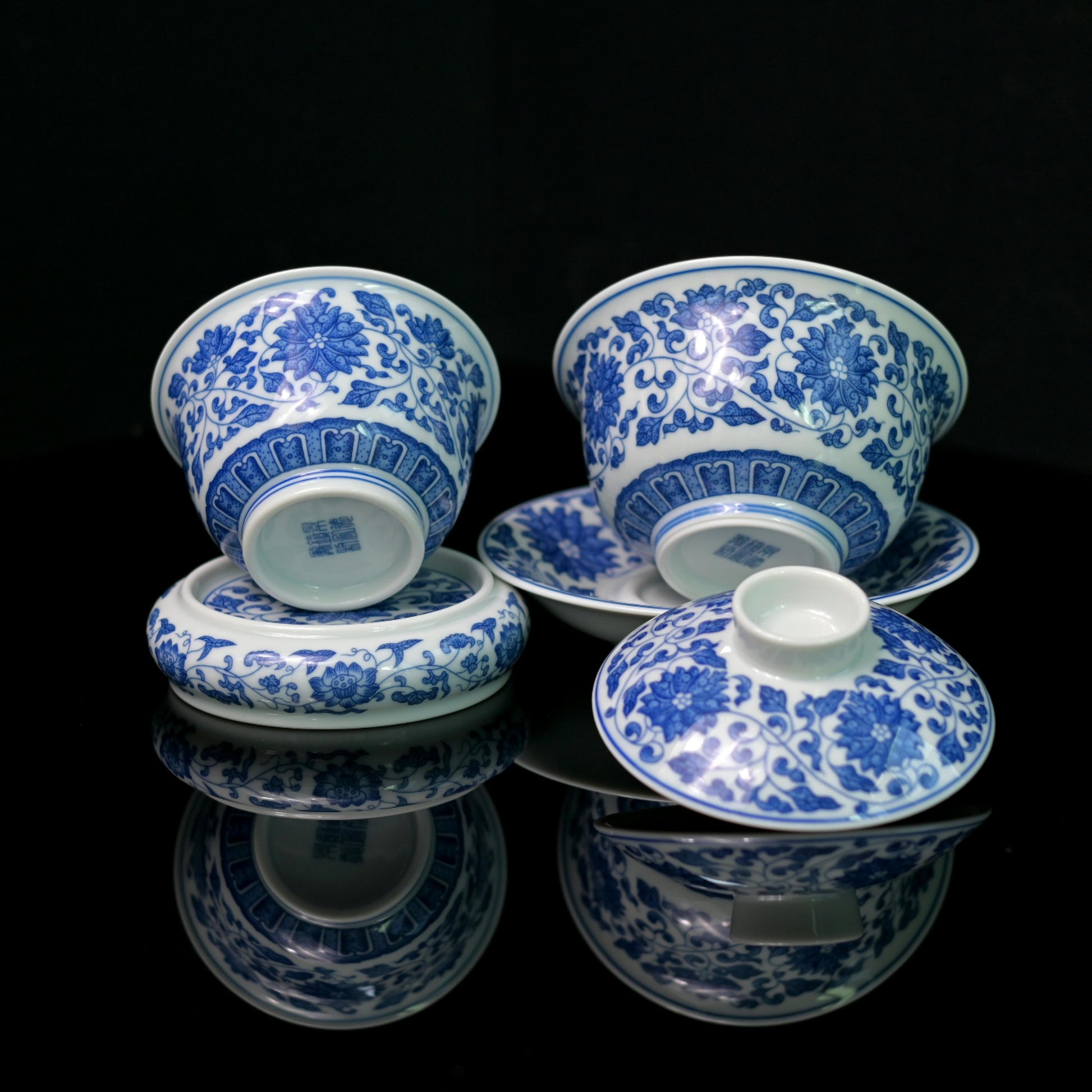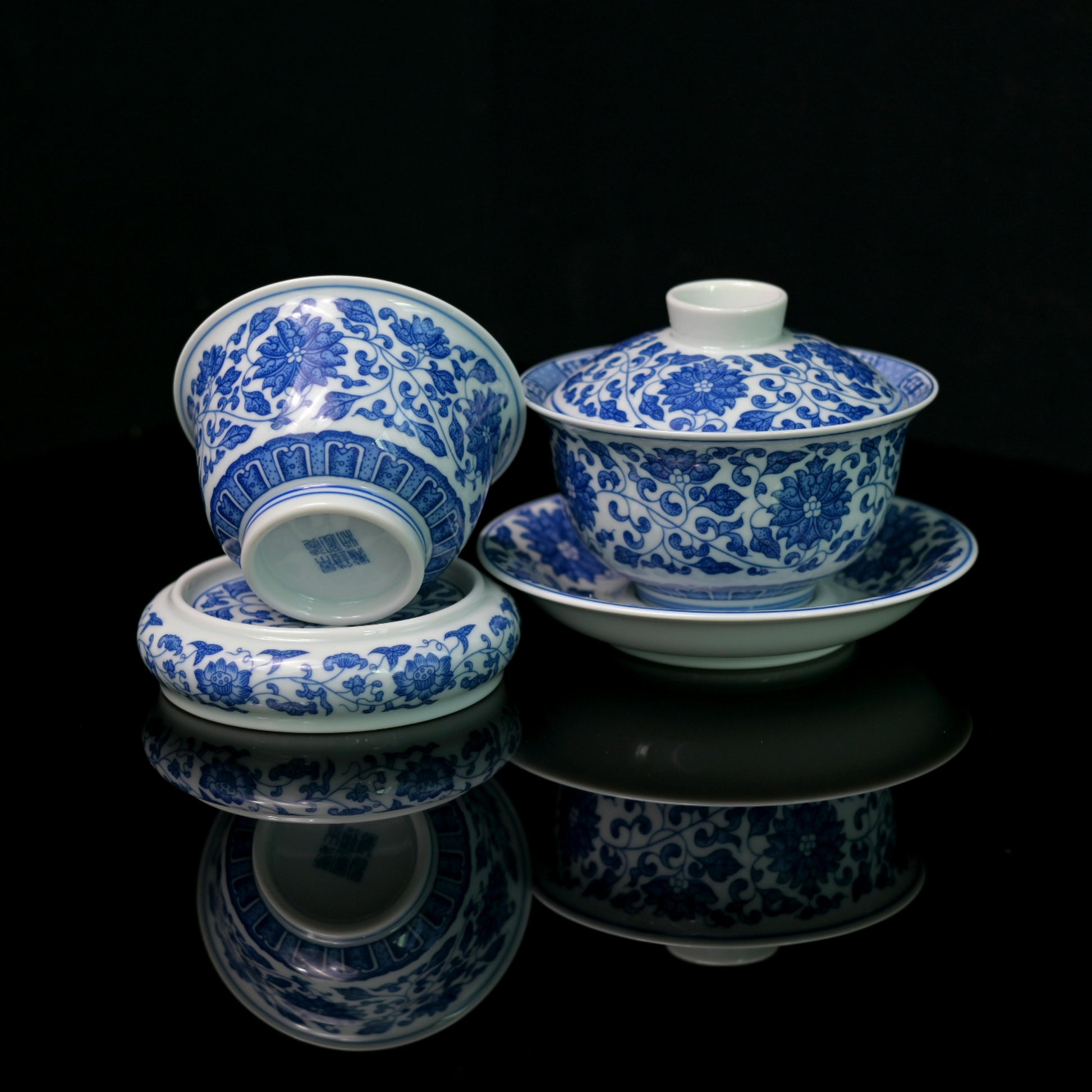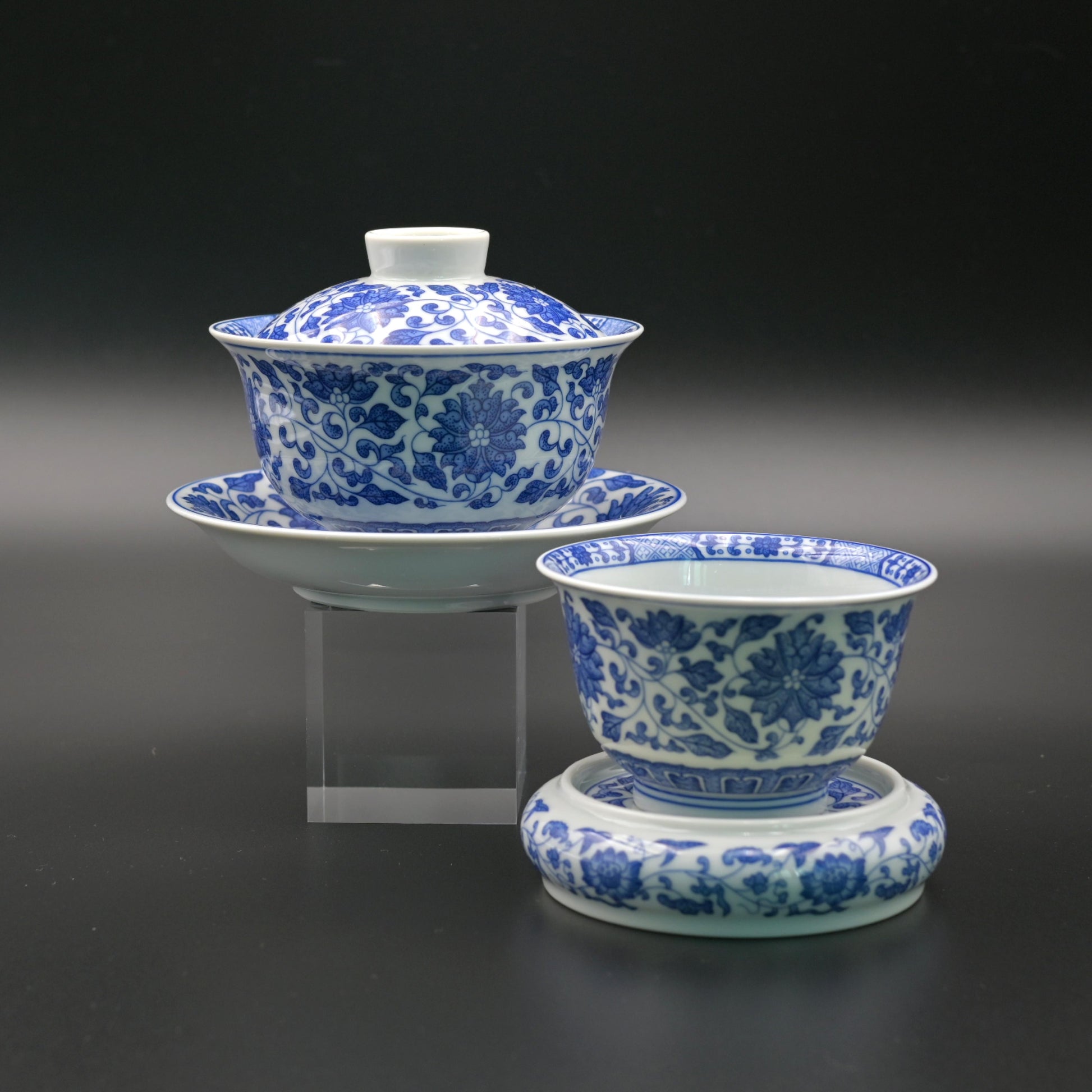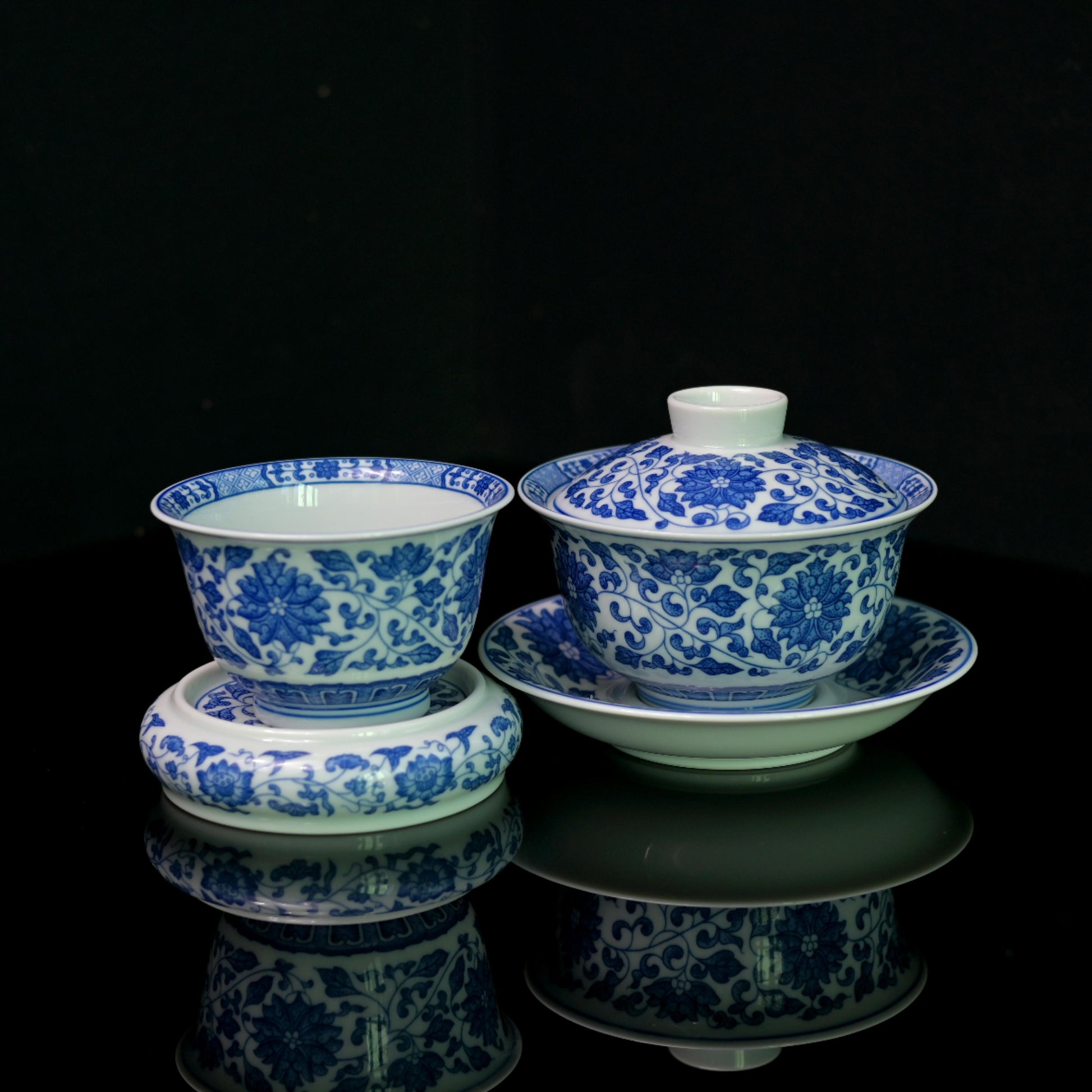 The lotus vine scrolling pattern is one of the traditional decorative designs of ancient China. It became widely popular after the Yuan Dynasty and is one of the most common motifs on porcelain. During the Ming Dynasty, it was sometimes referred to as "twisting branches," using plant stems or vines as a framework that extends in all directions, forming continuous wave-like patterns either two-dimensionally or four-dimensionally. This design is cyclic, endlessly varying, and dynamic. The vine pattern is a stylized, refined version of creeping plants, giving it an elegant and lively appearance. Alongside other motifs like the lotus petal pattern, cloud scroll pattern, ruyi pattern, and key-fret pattern, the vine pattern is a key decorative element in ancient Chinese art and is widely used in Chinese ceramic tea wares.