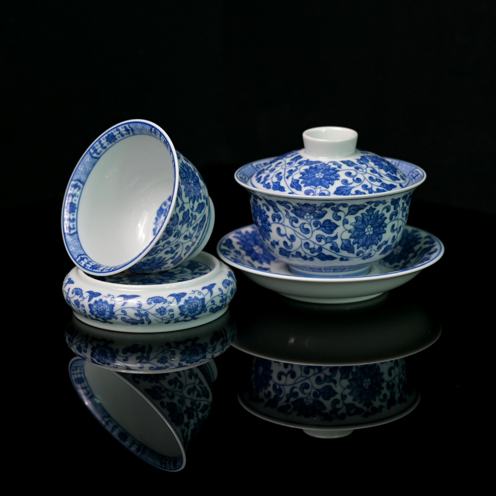 Jingdezhen Blue and White Lotus Scrolling Pattern Tea Set
