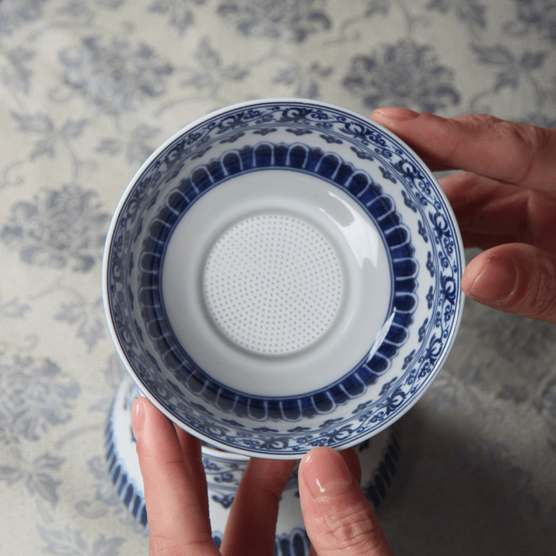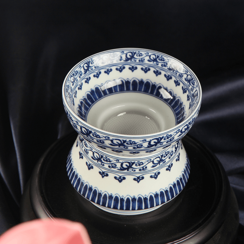 Jingdezhen Blue and White Lotus Vine Tea Filter With Containning Base