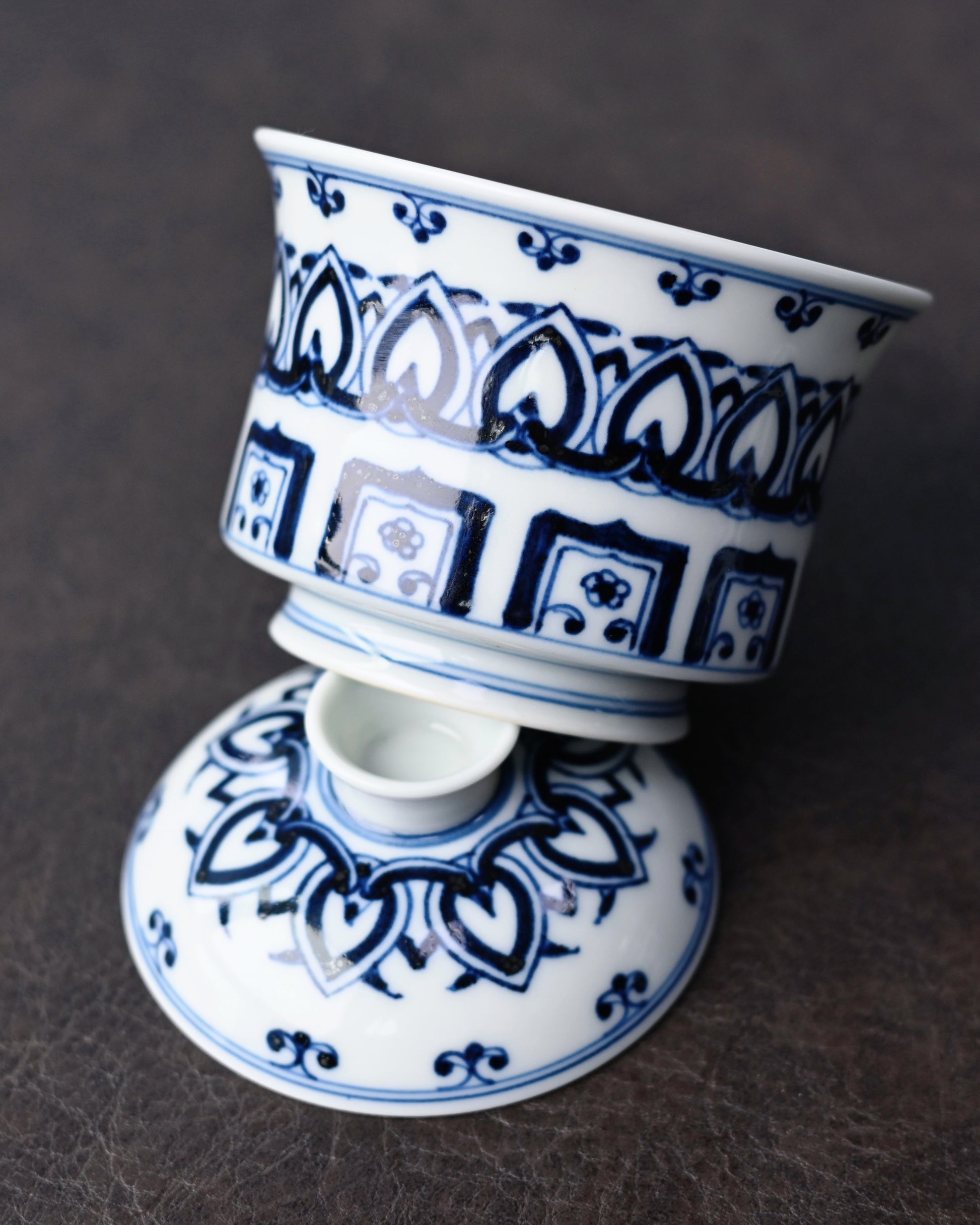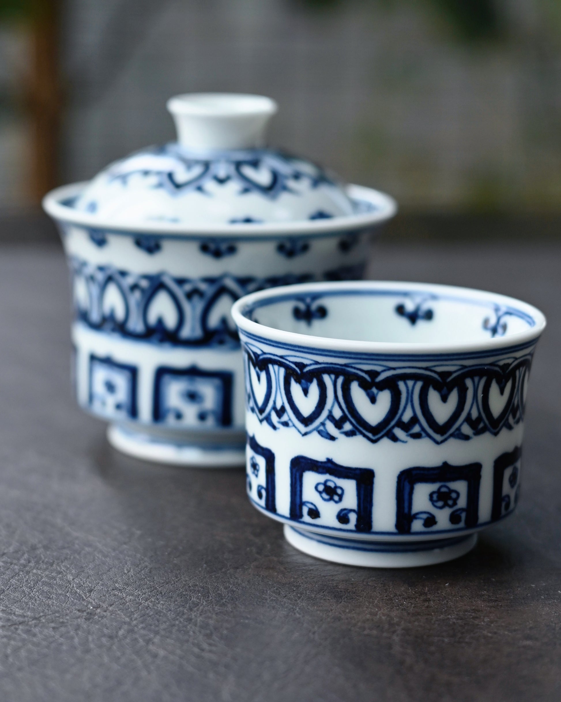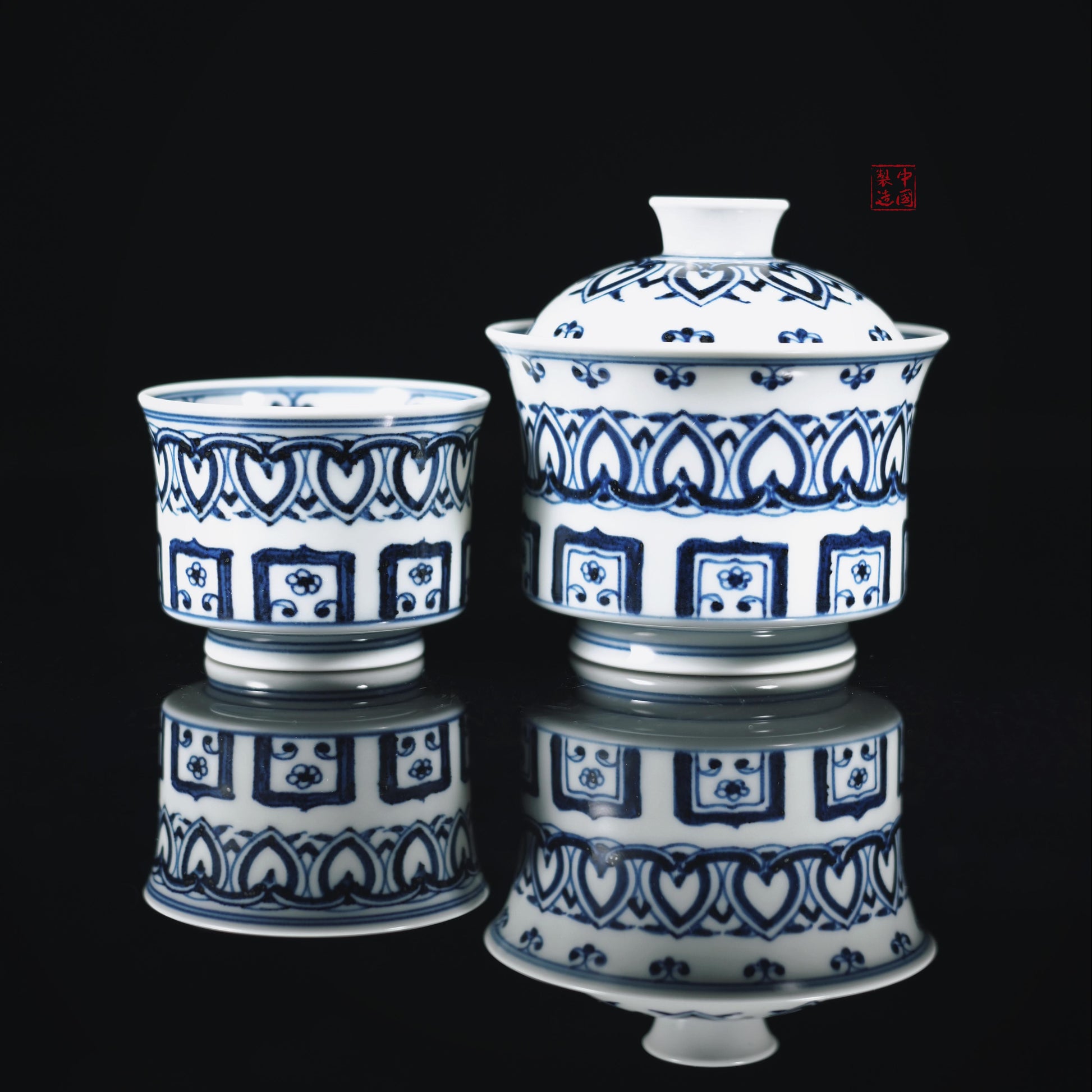 Jingdezhen Handmade Blue and White Baoxiang Gaiwan Set