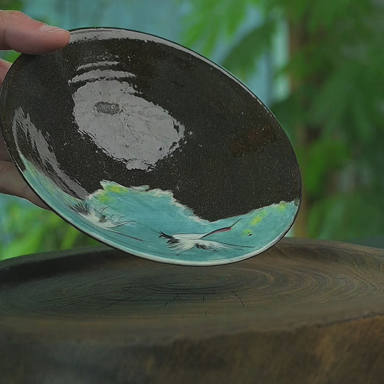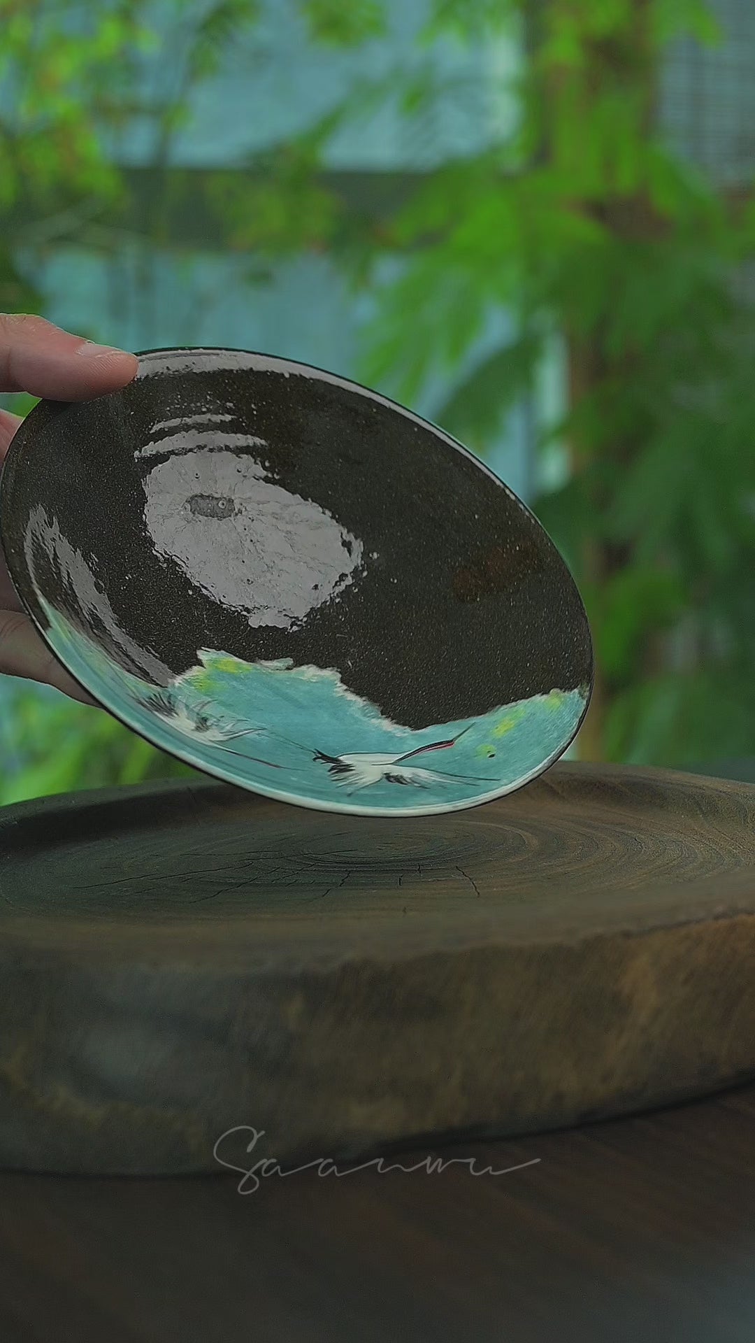 This drip tray creatively combines the muted tones of rough pottery with hand-painted blue hues, creating a striking visual contrast. The blue sections feature hand-painted red-crowned cranes soaring across a sky-blue background. Balancing the minimalist beauty of wabi-sabi style with the refined elegance of classical Eastern painting, this tray embodies both simplicity and sophisticated artistry.