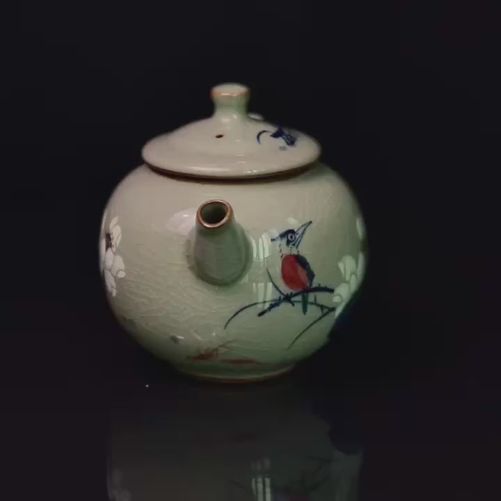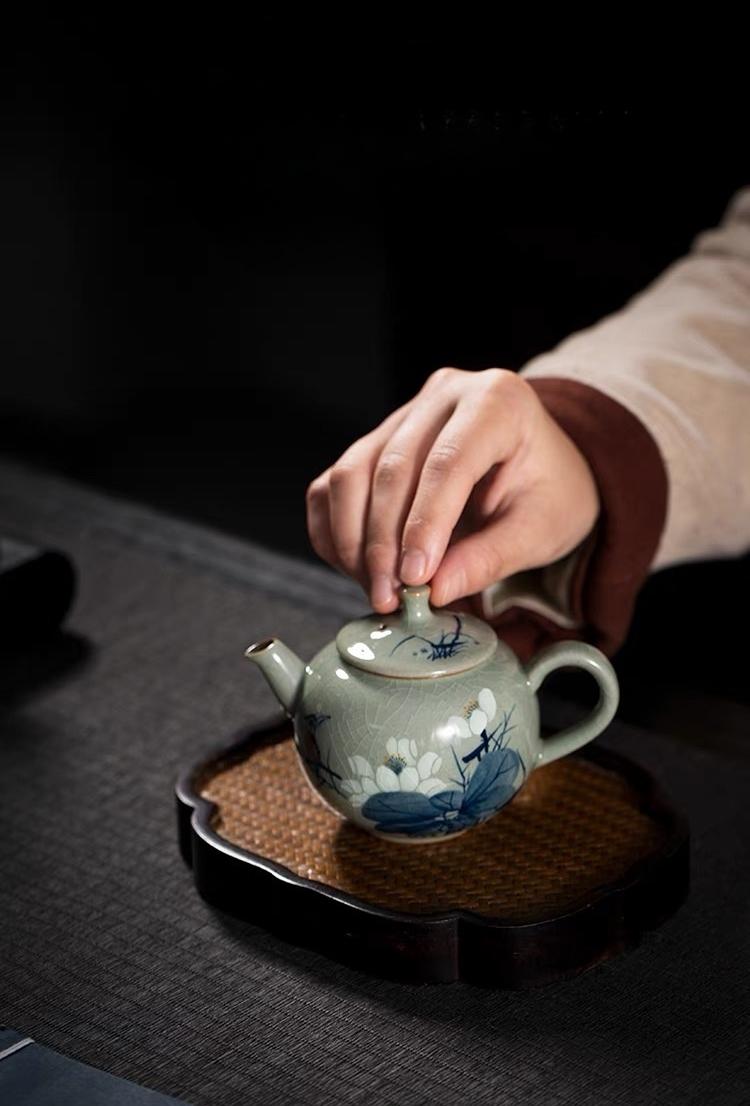 Jingdezhen Wood-Fired Kiln Old Clay Handmade Lotus Blue and White Underglaze Color Teapot.