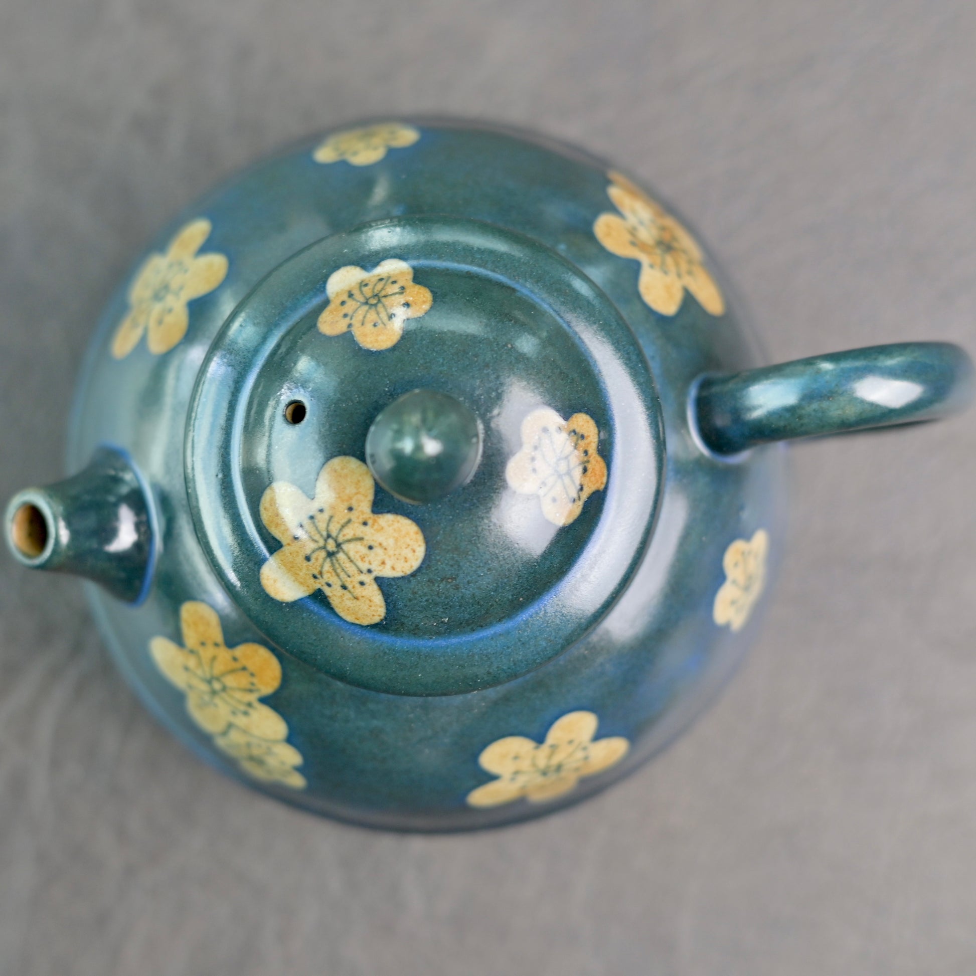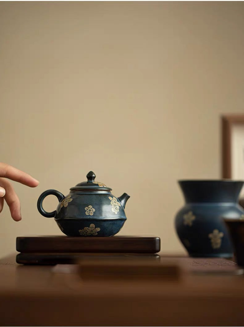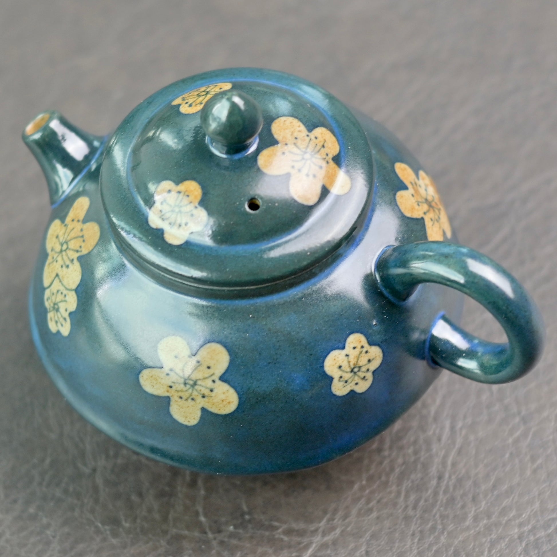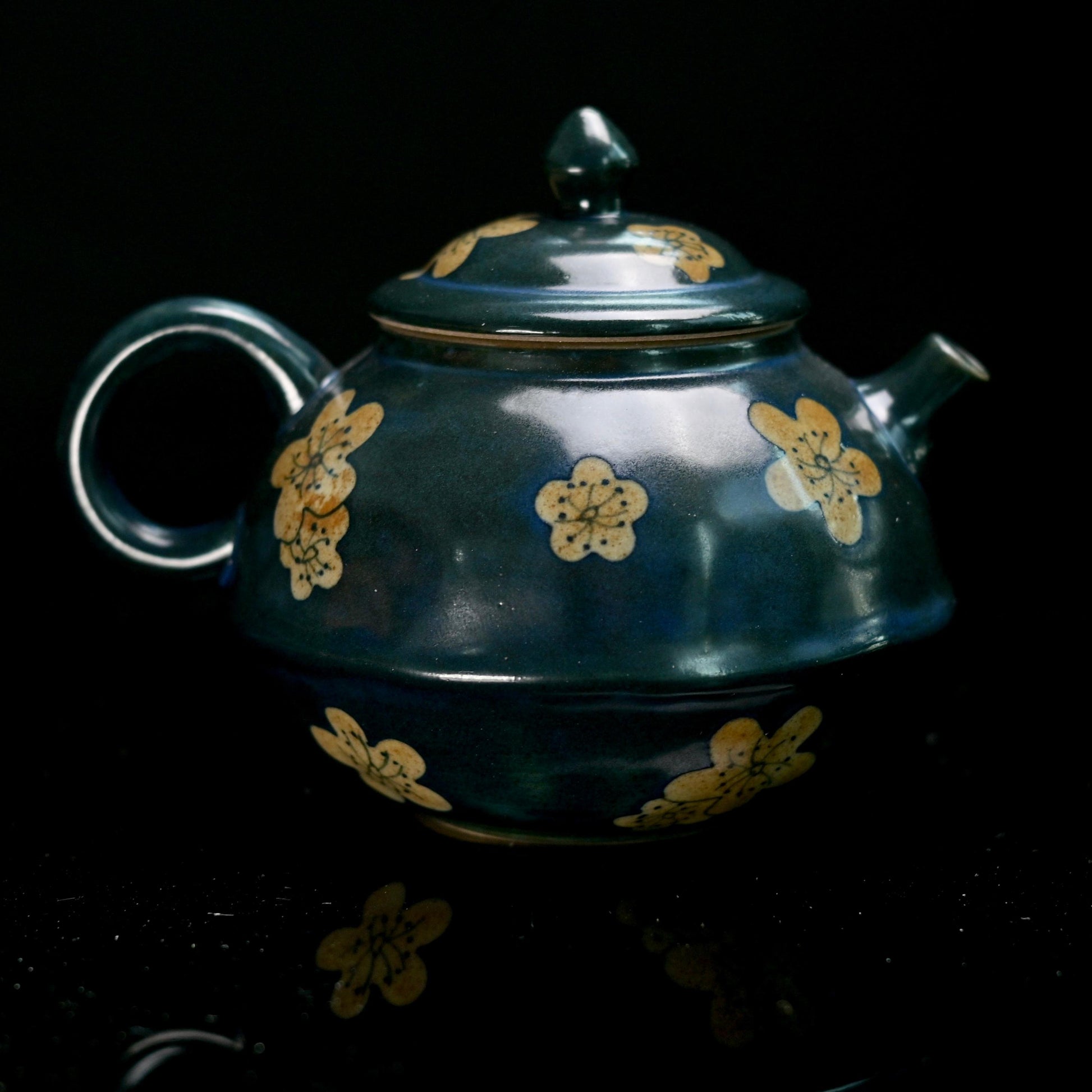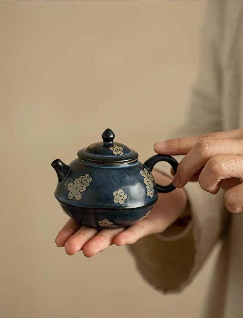 Kohiki Dark Blue Glaze Plum Blossom Painting Teapot Japanese Style Tea Pot