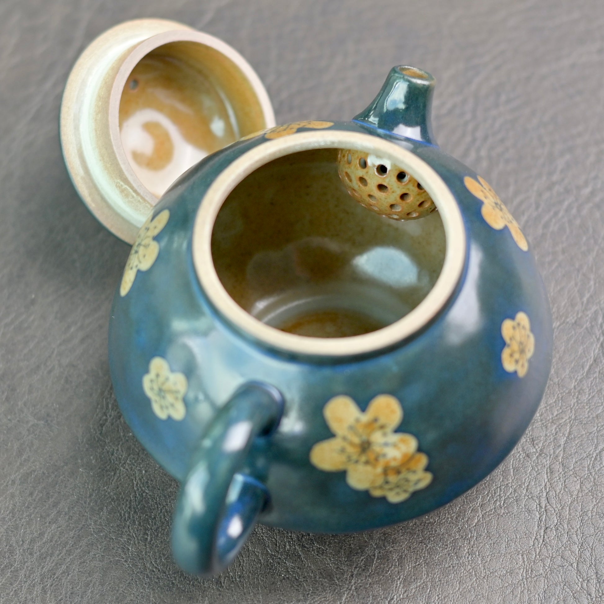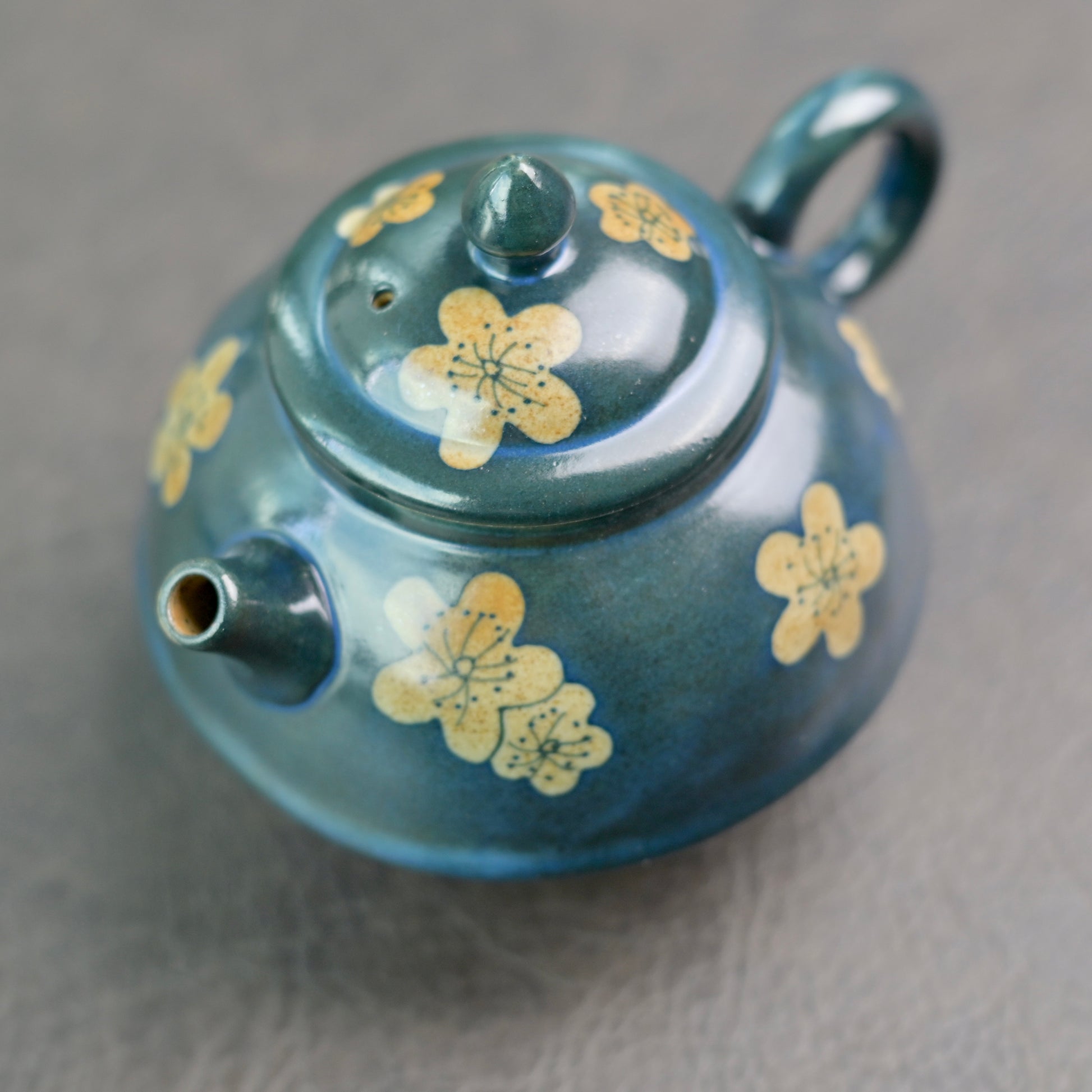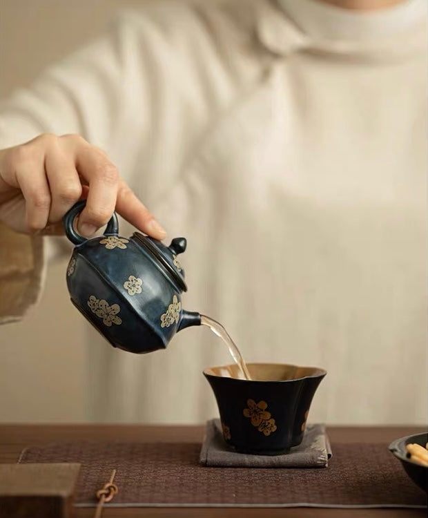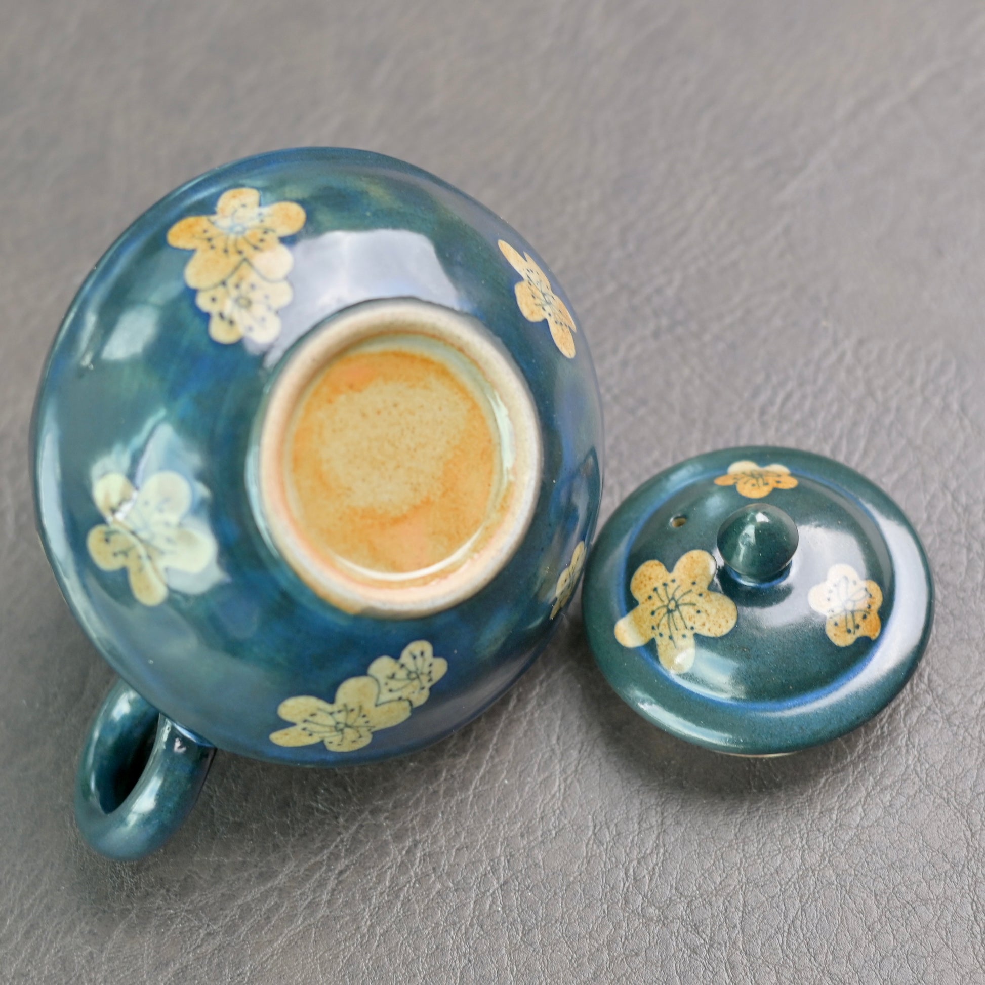Kohiki Dark Blue Glaze Plum Blossom Painting Teapot Japanese Style Tea Pot