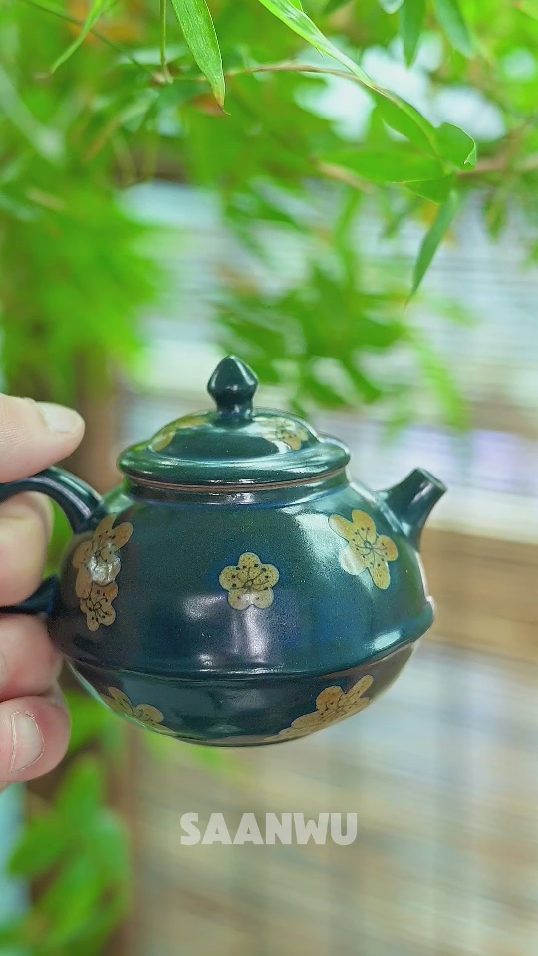 This Kohiki teapot with a blue-glazed plum blossom pattern is a perfect fusion of Kohiki craftsmanship and classical beauty. It not only showcases the warm texture of Kohiki but also adds an artistic touch with its blue-glazed plum blossom design, making it an indispensable choice for an elegant tea setting.