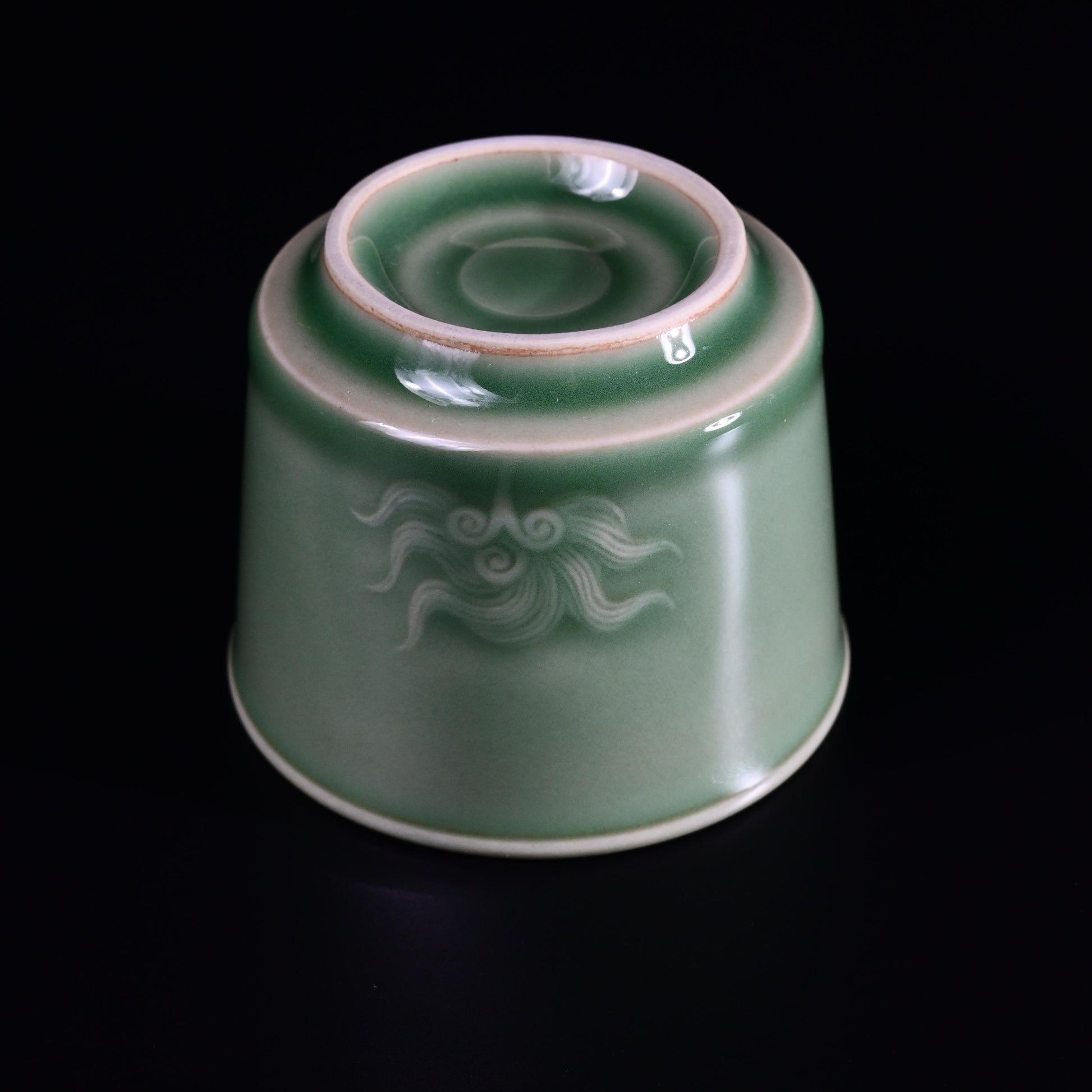 Longquan Celadon Martial Lion Design Hand-carved Host Tea Cup