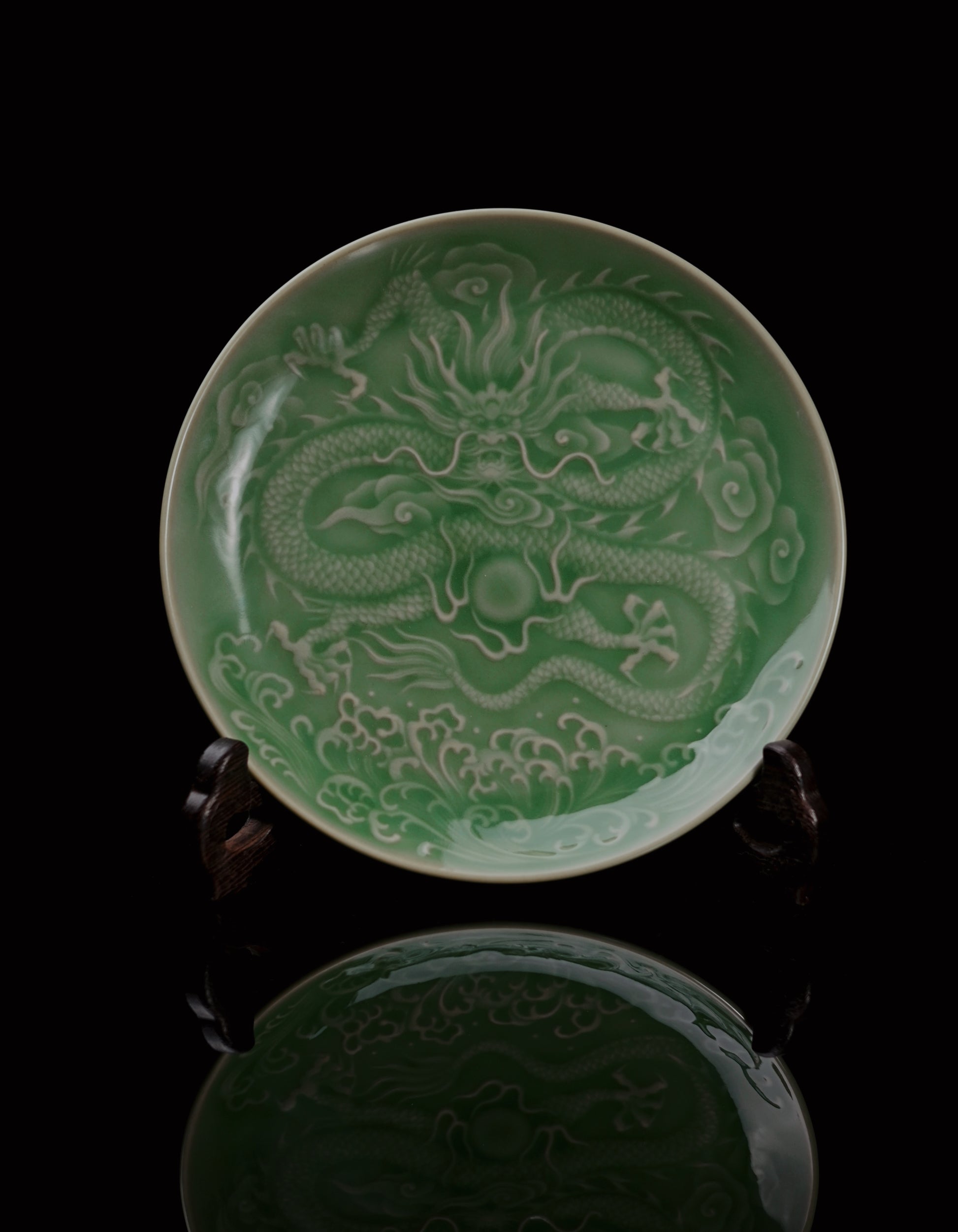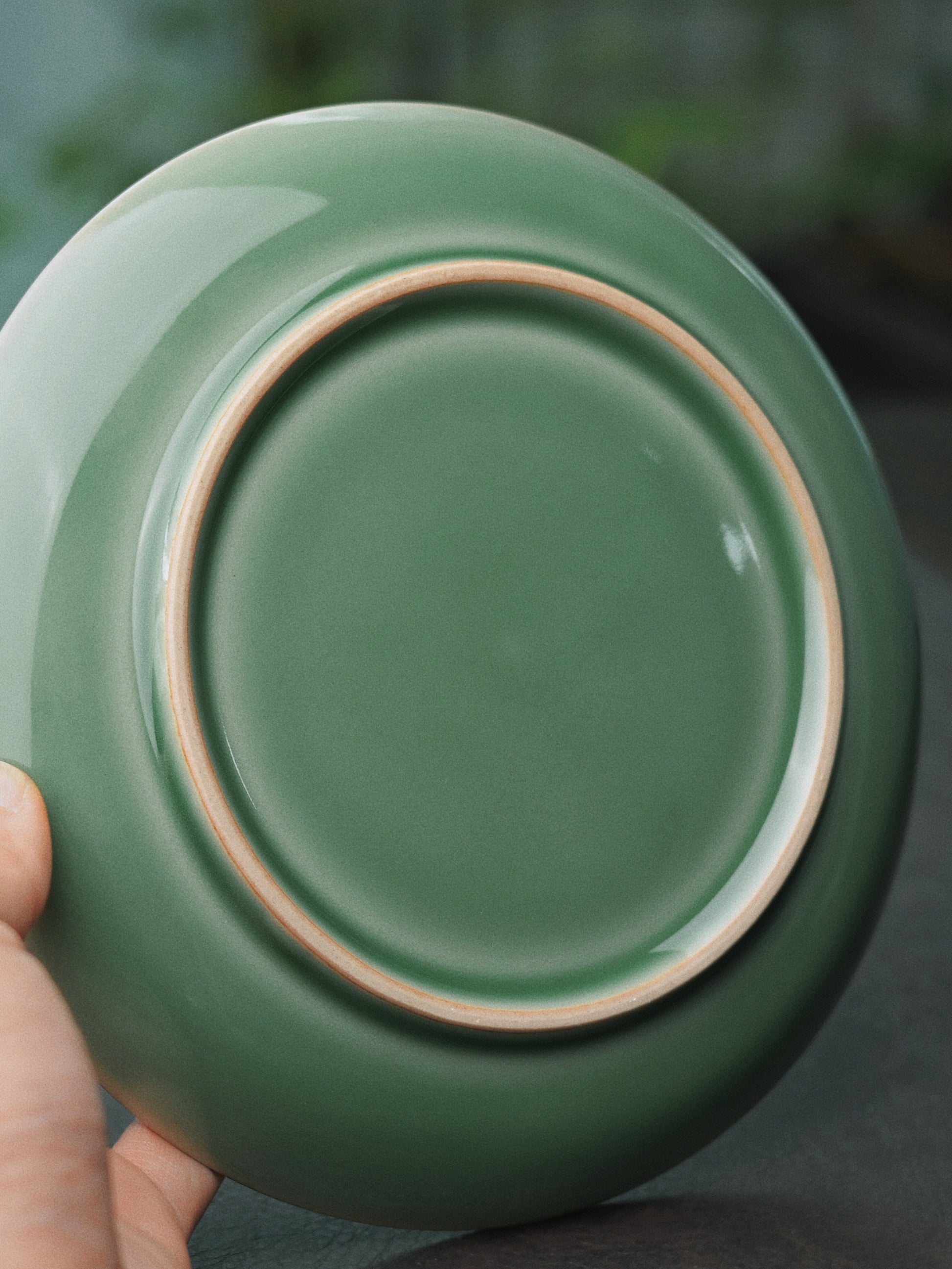 Longquan Celadon Relief-Carved Dragon Pattern Tea Tray / Pot Coaster