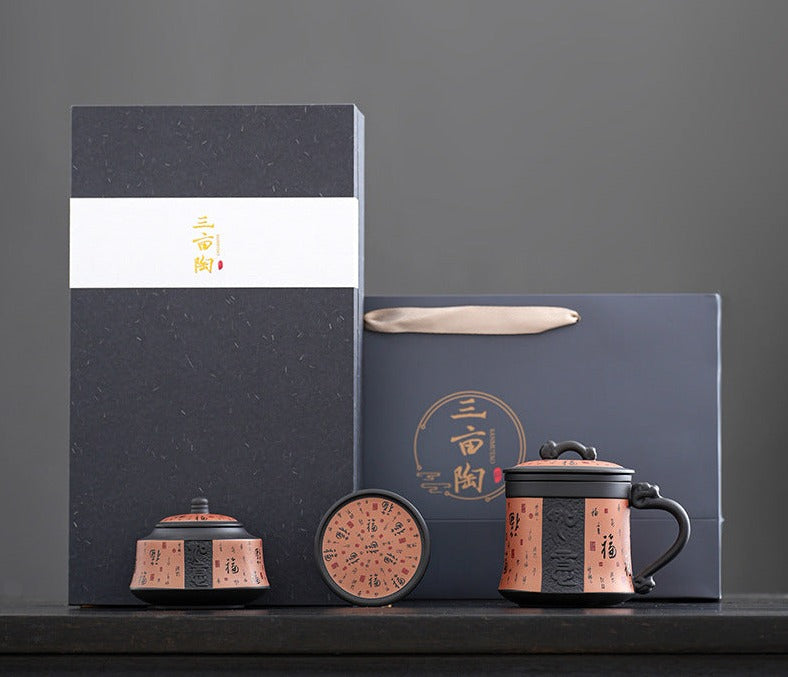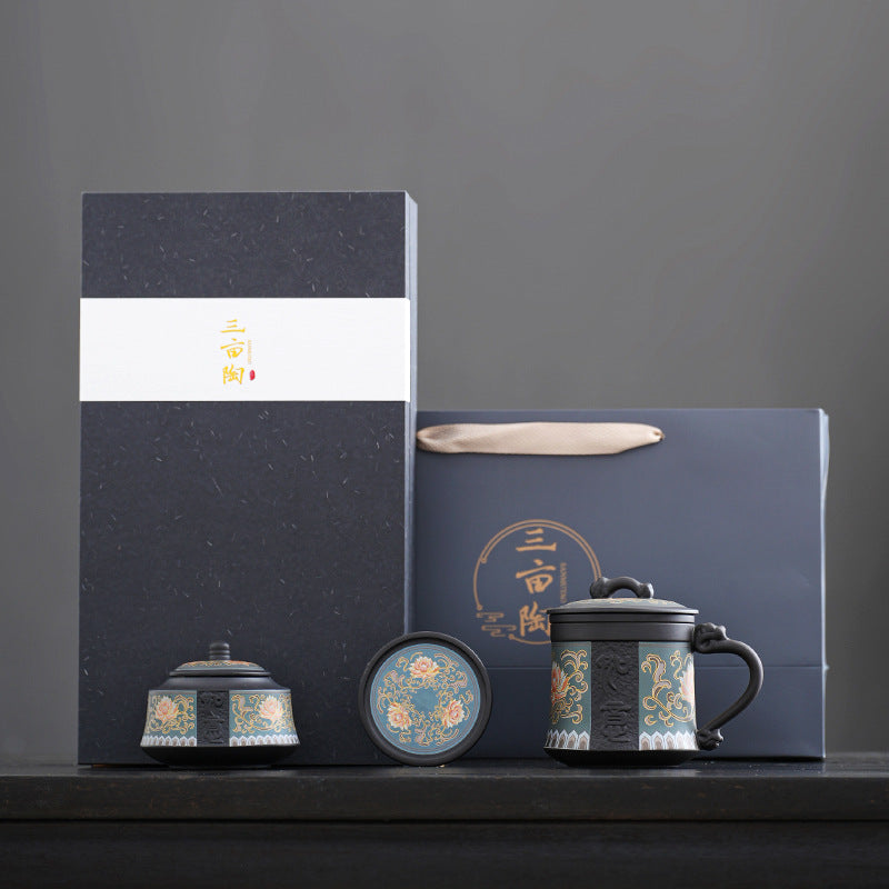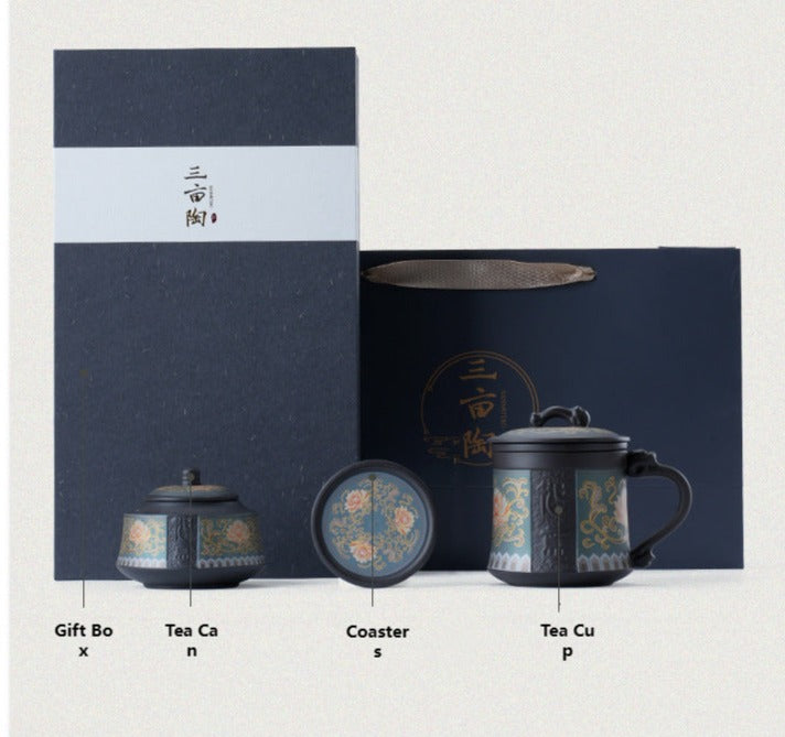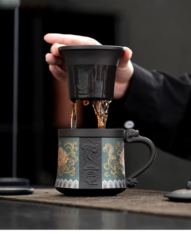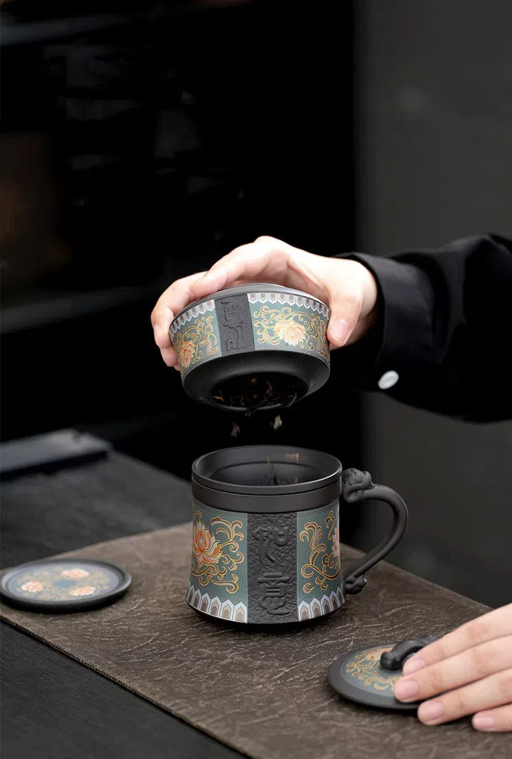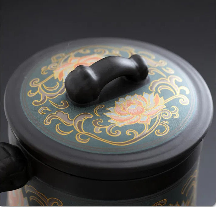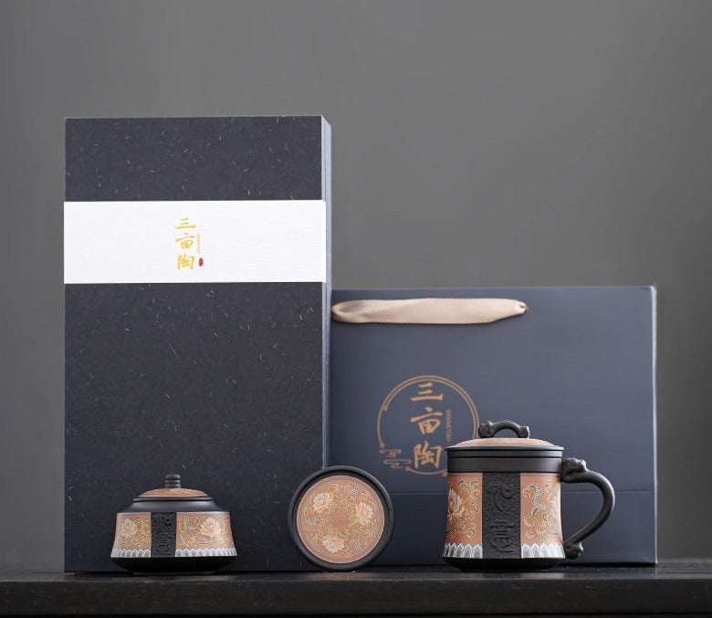 Purple Clay Royal Lotus Patterned Tea Cup +Tea Can
