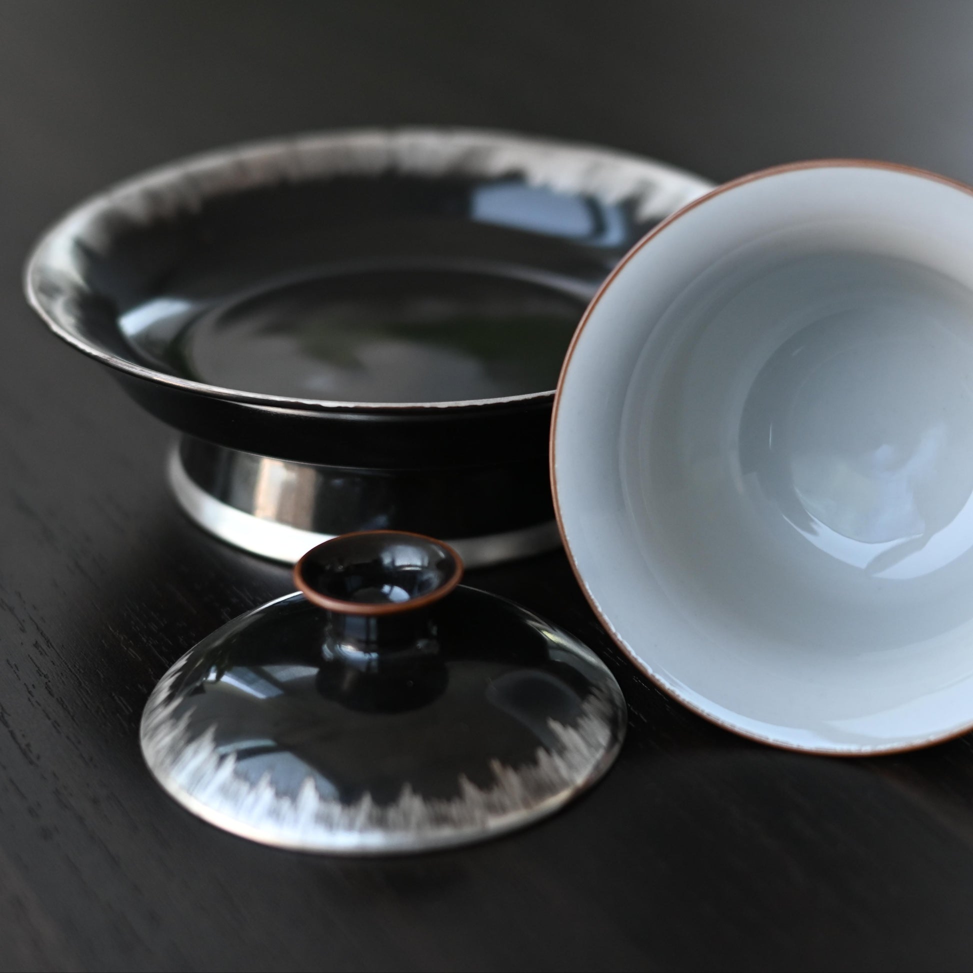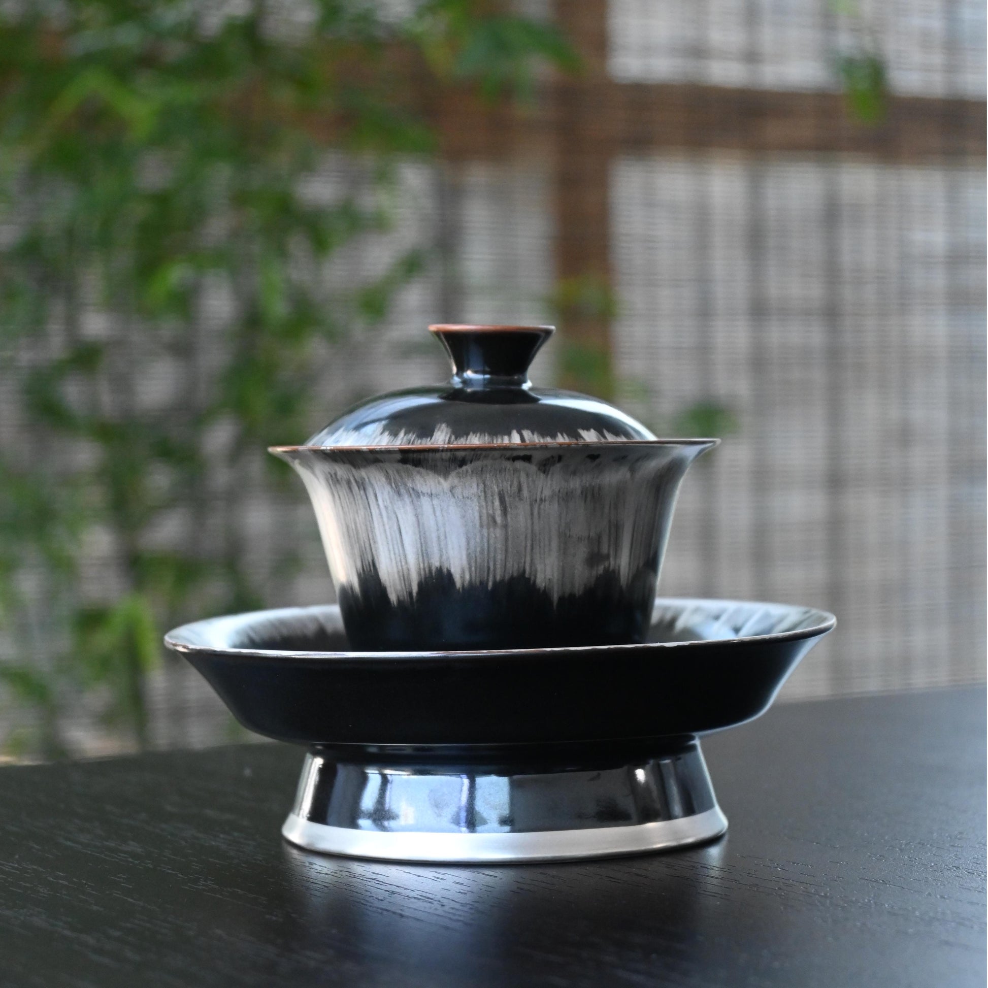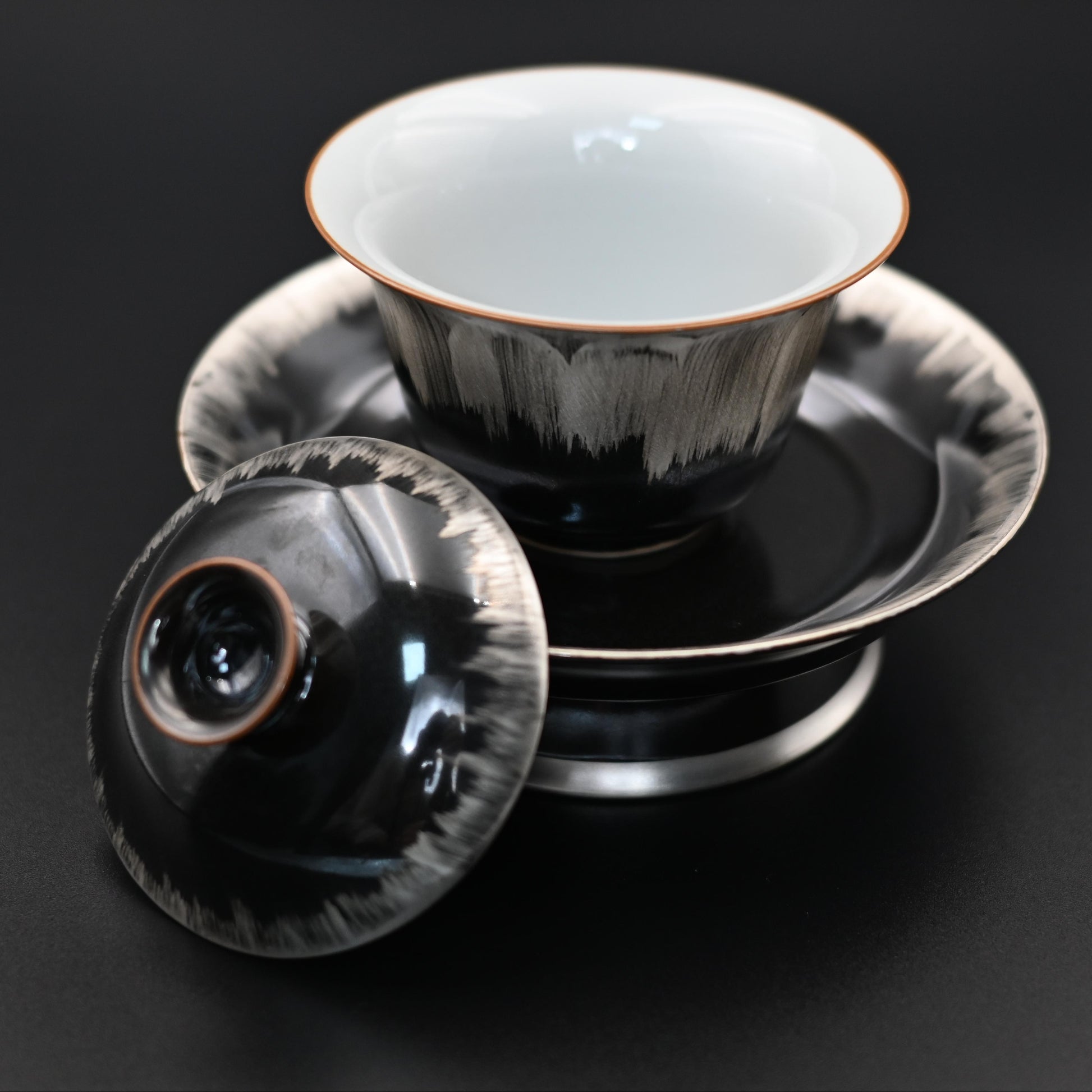Silver-glazed Black and White Gaiwan with Saucer