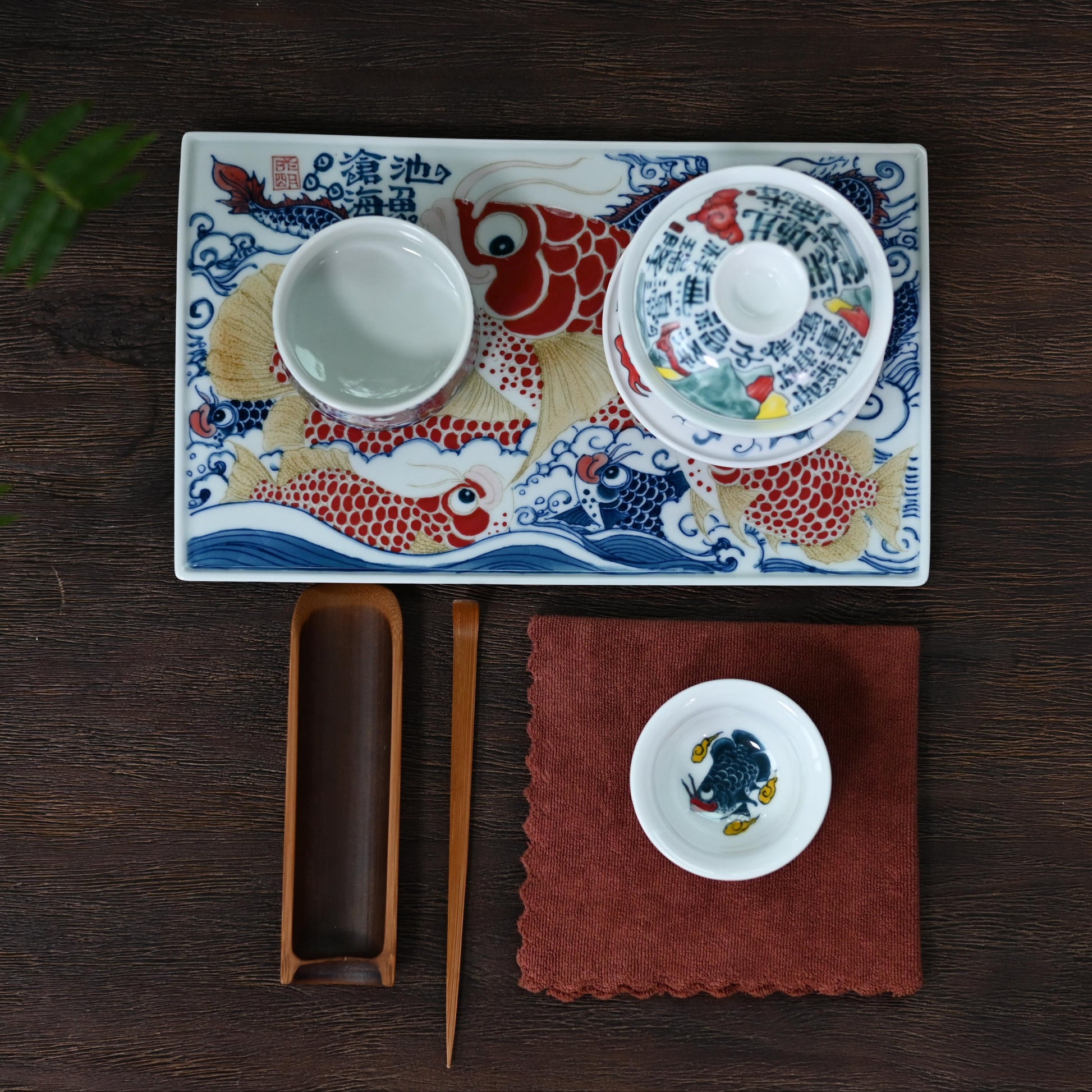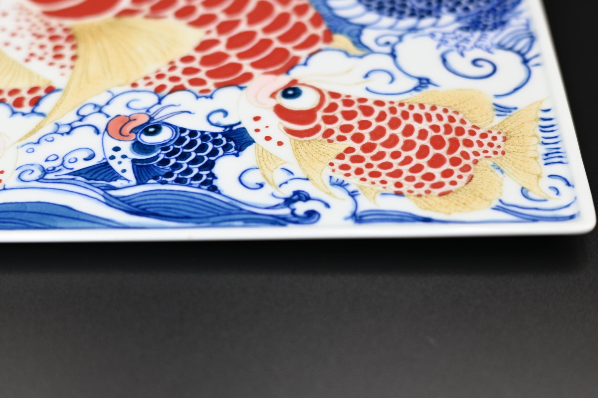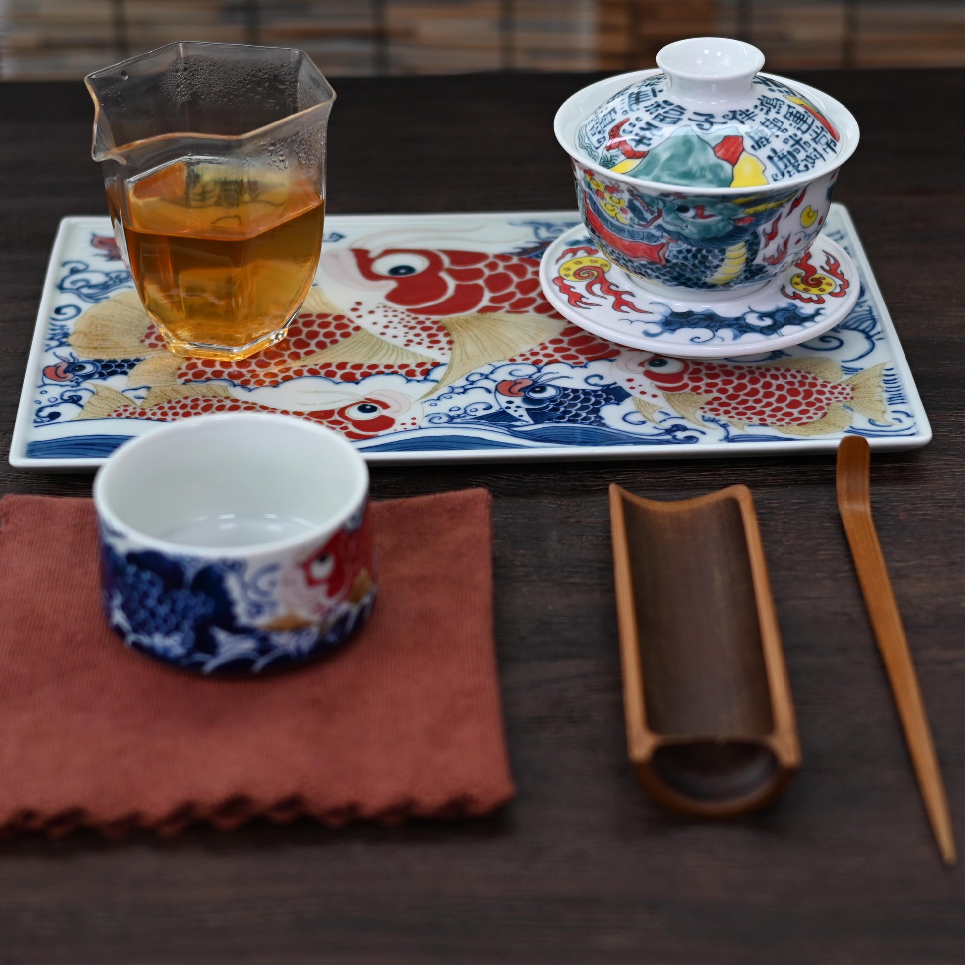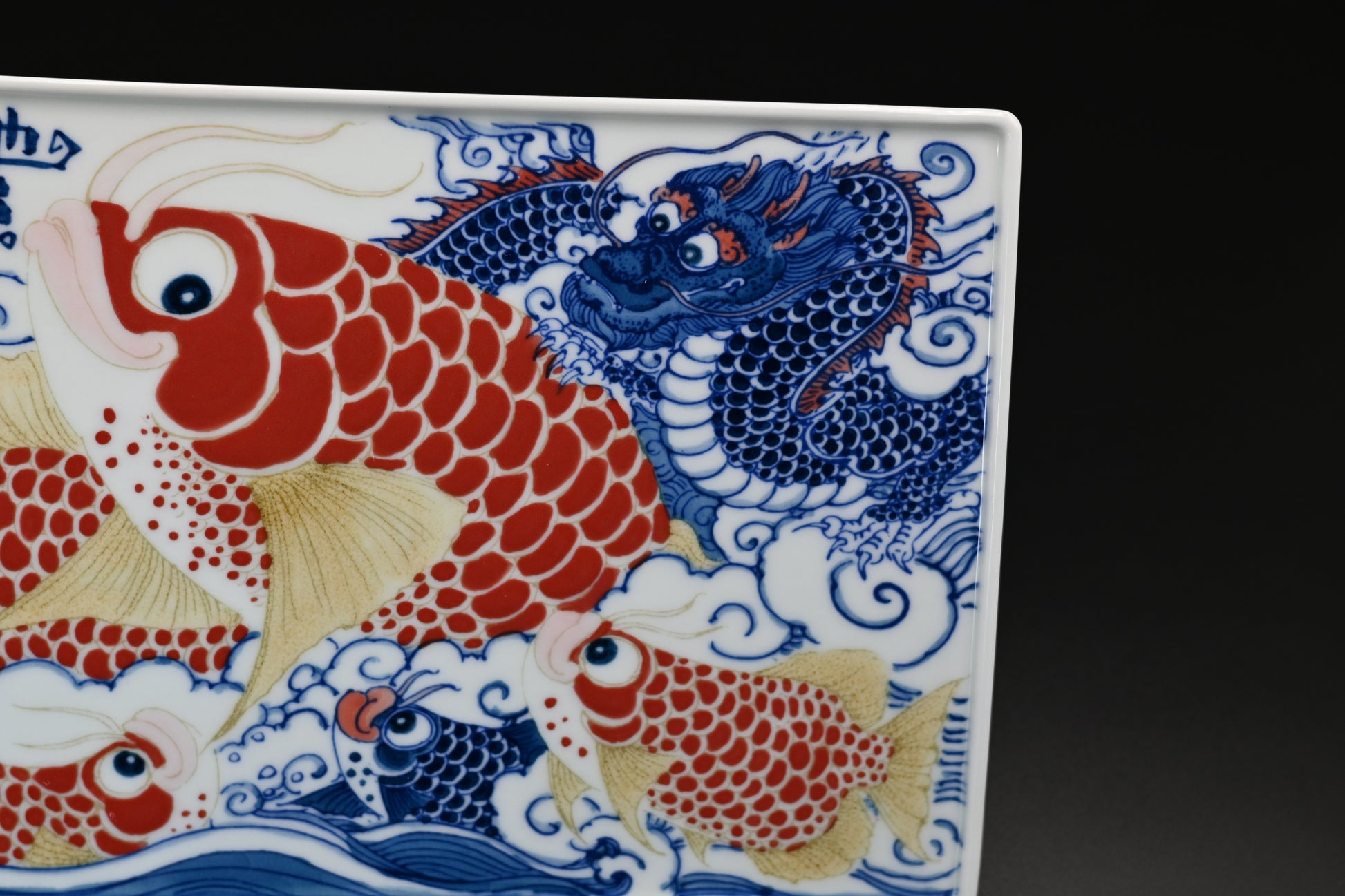 Underglaze Polychrome Dragon and Fish Dry Tea Tray