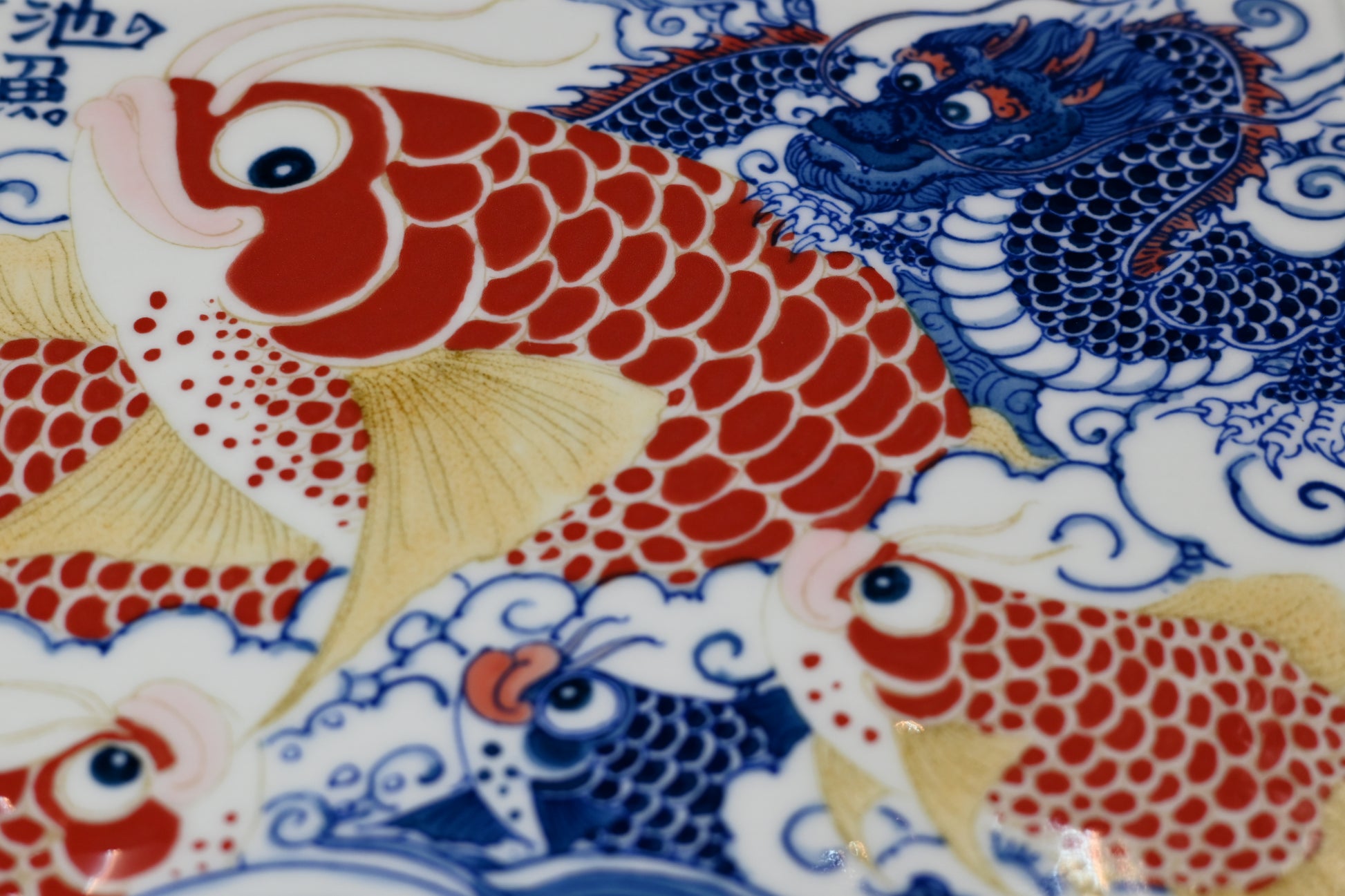 - The unique underglaze coloring technique ensures vibrant, long-lasting patterns that remain fresh and unfaded over time. The dragon and fish design is vivid and lifelike, symbolizing good fortune.