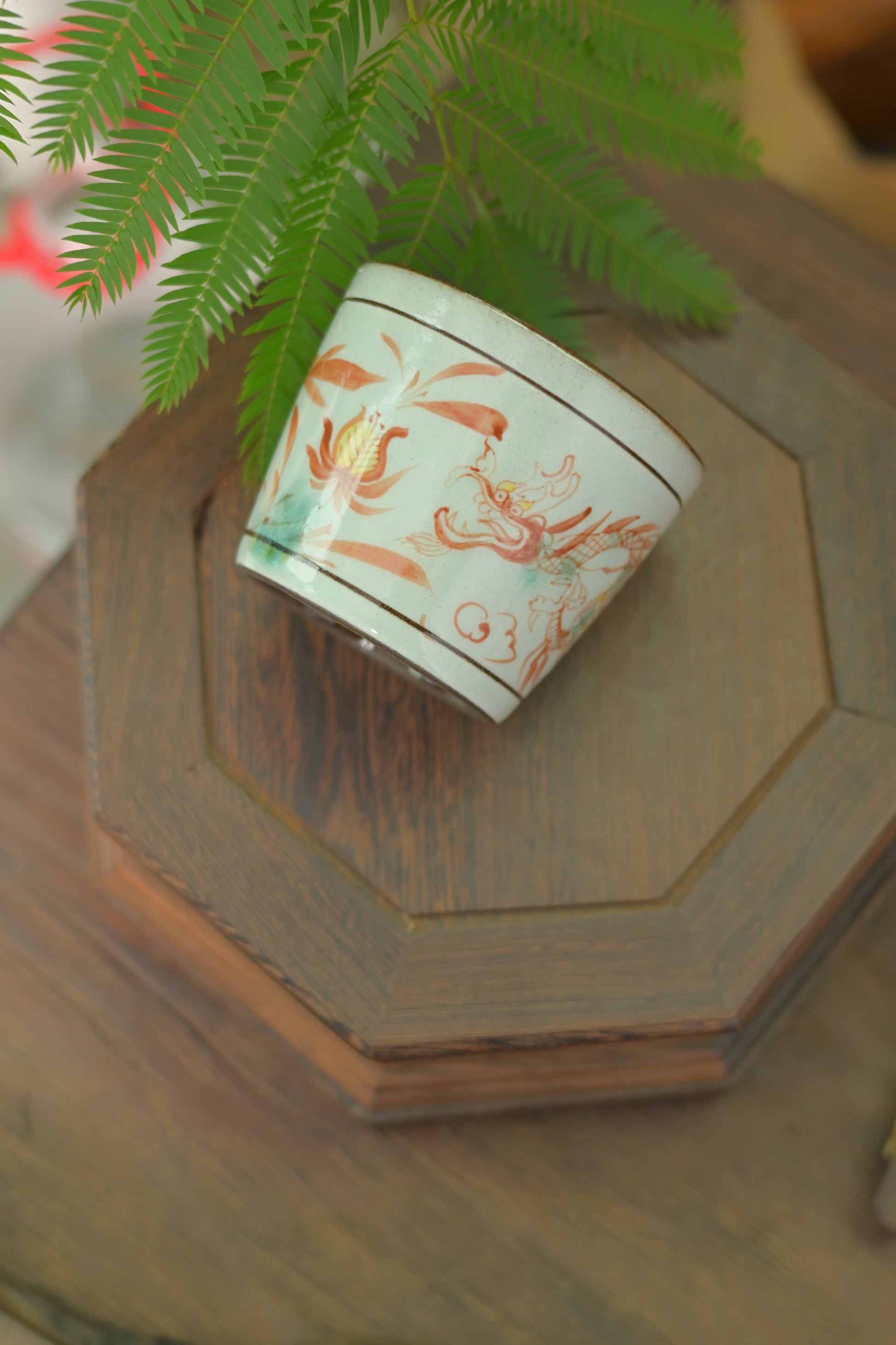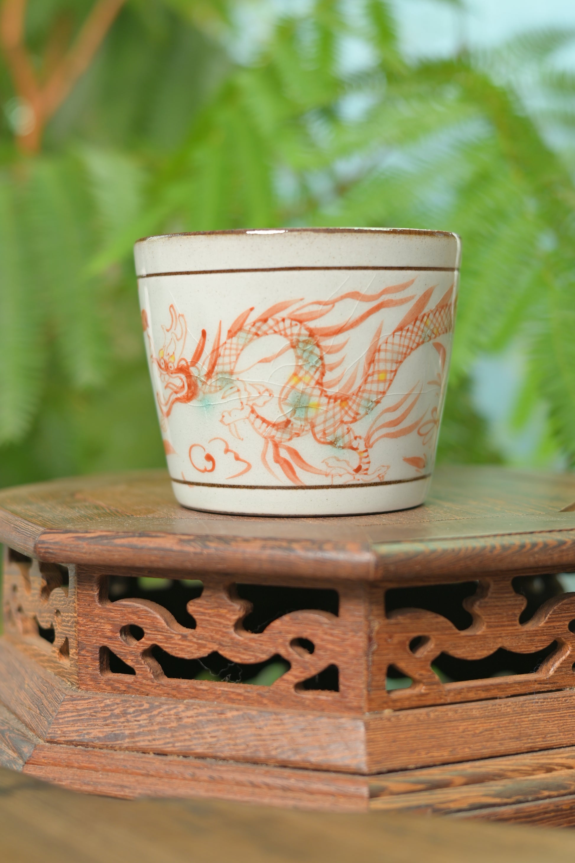 Crafted from fine white porcelain, this cup features a hand-painted dragon design created using traditional underglaze techniques. The artwork is sealed beneath a clear glaze, preserving its vivid detail and smooth finish.