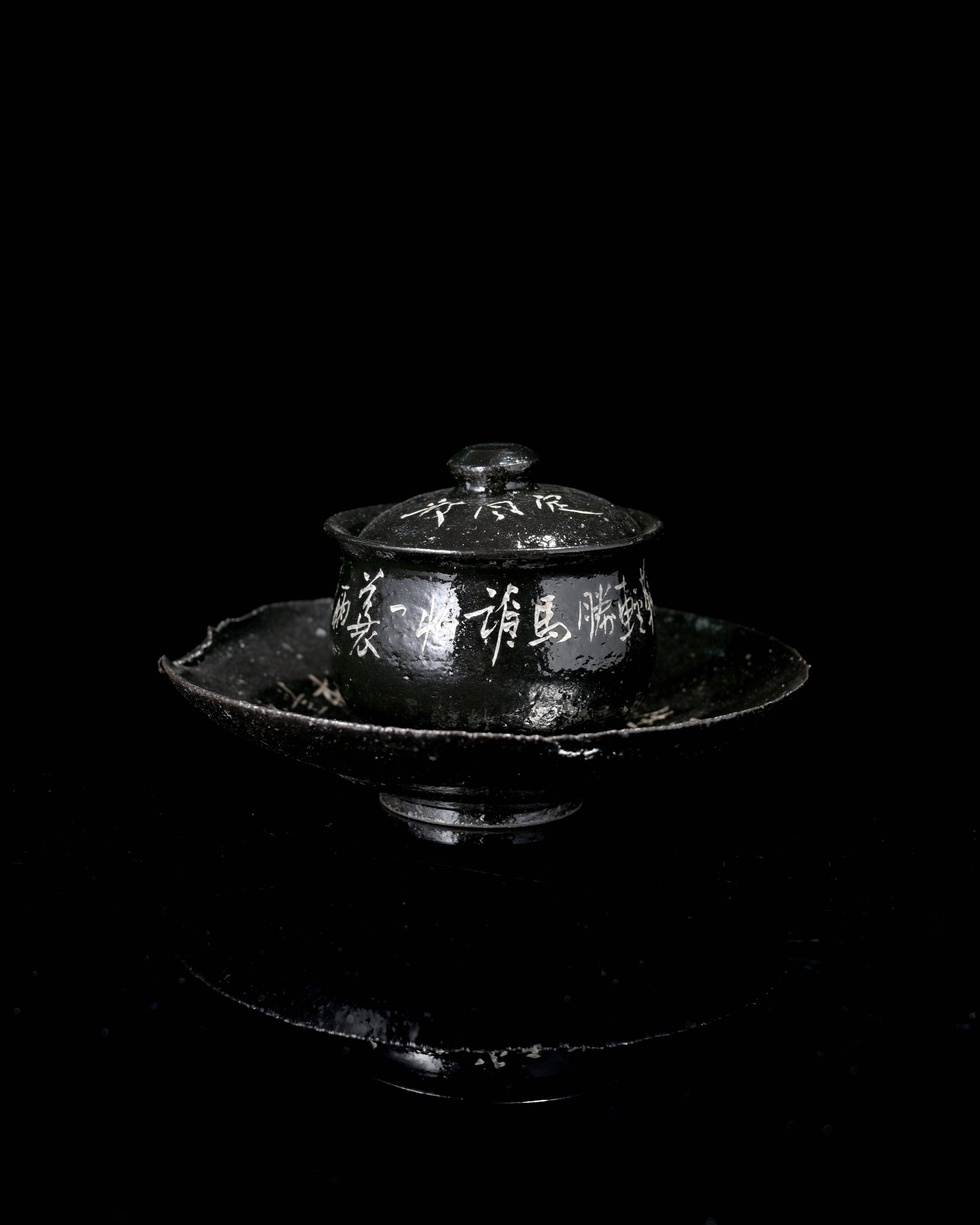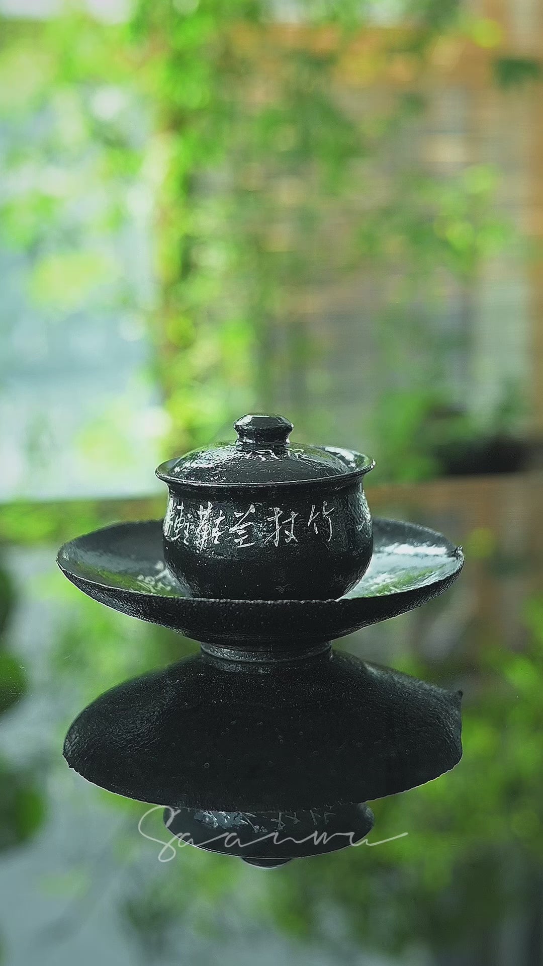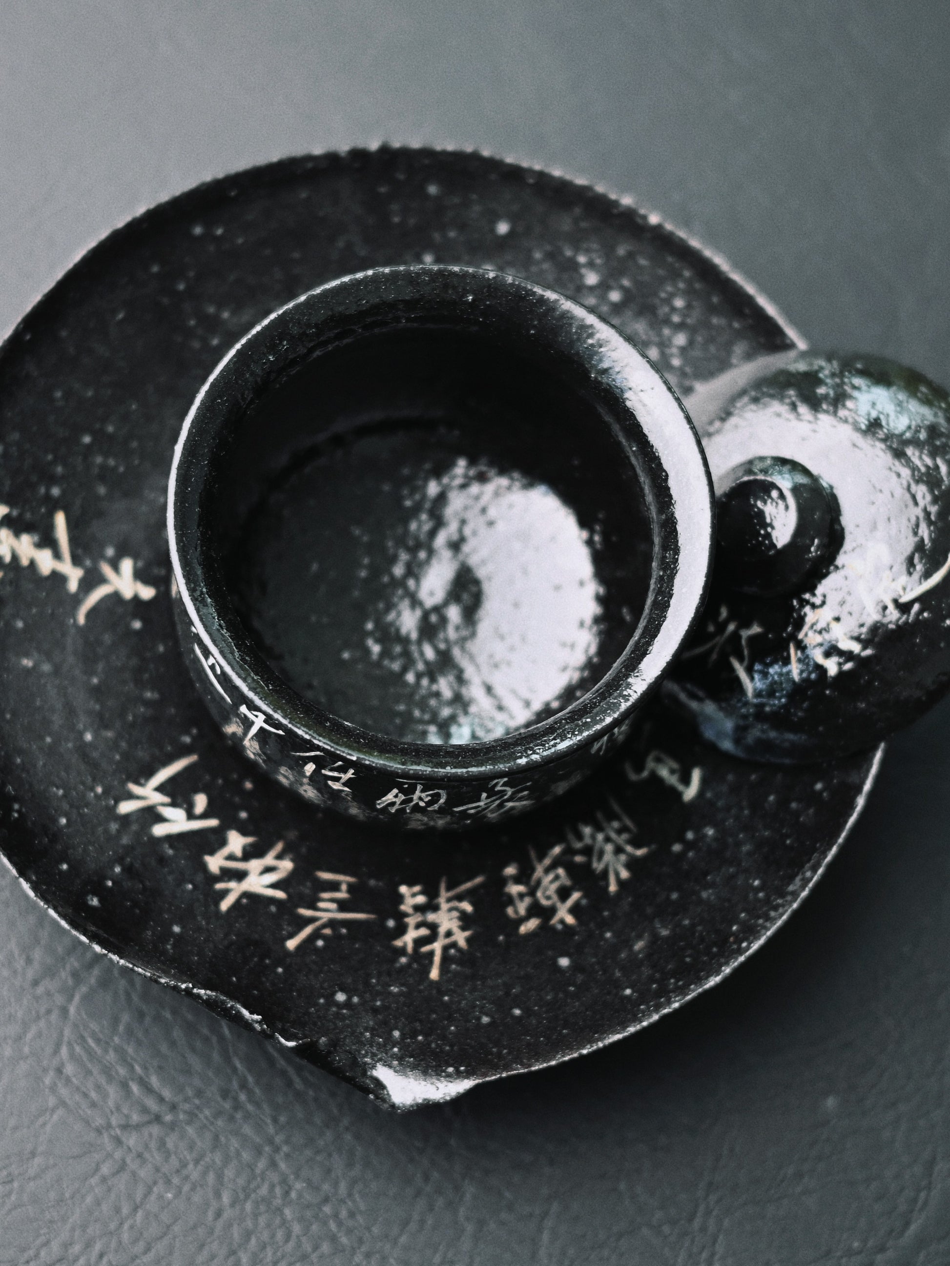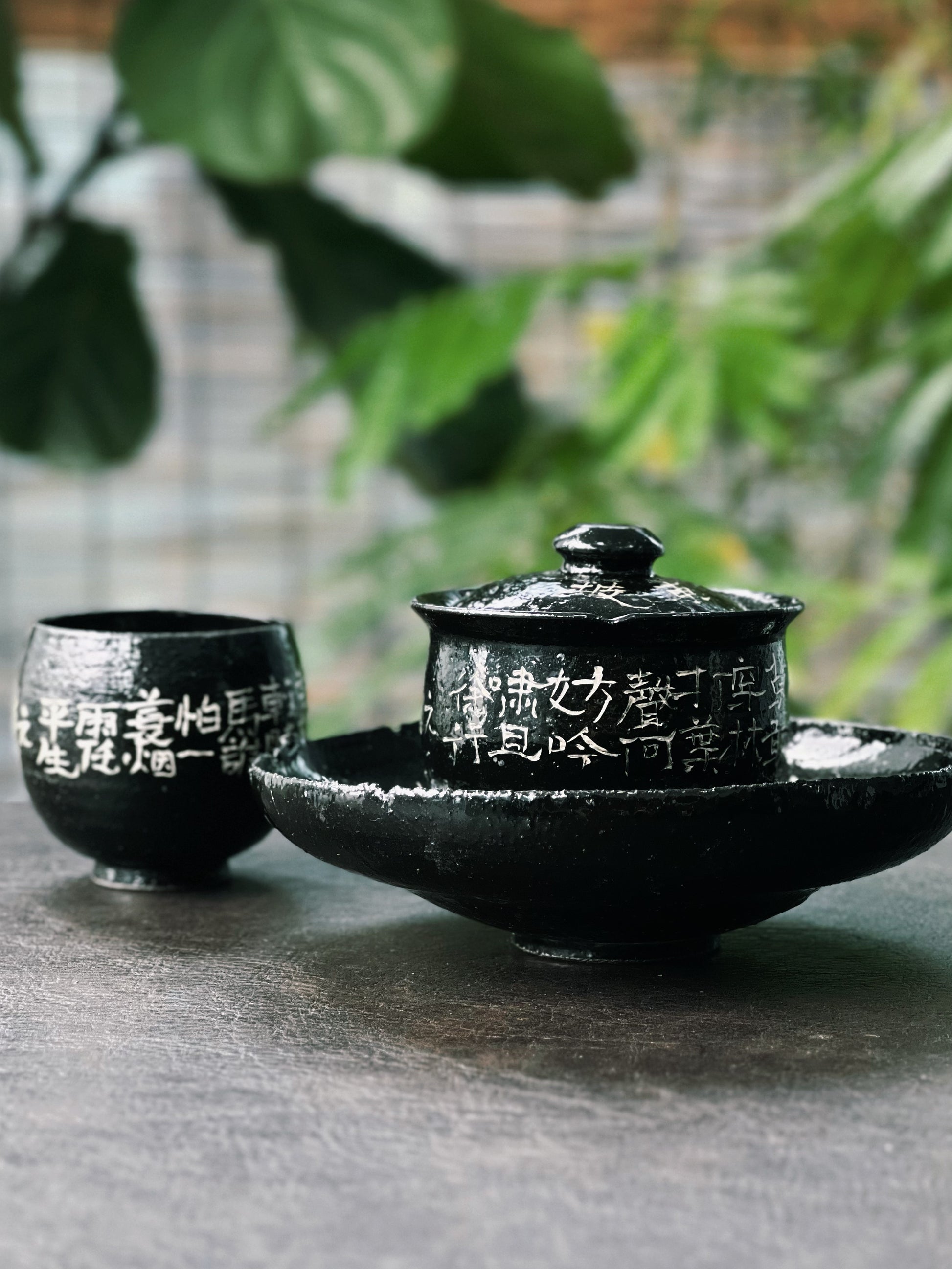 Wabi-Sabi Black Glaze Hand-Made Calligraphy Gaiwan Set