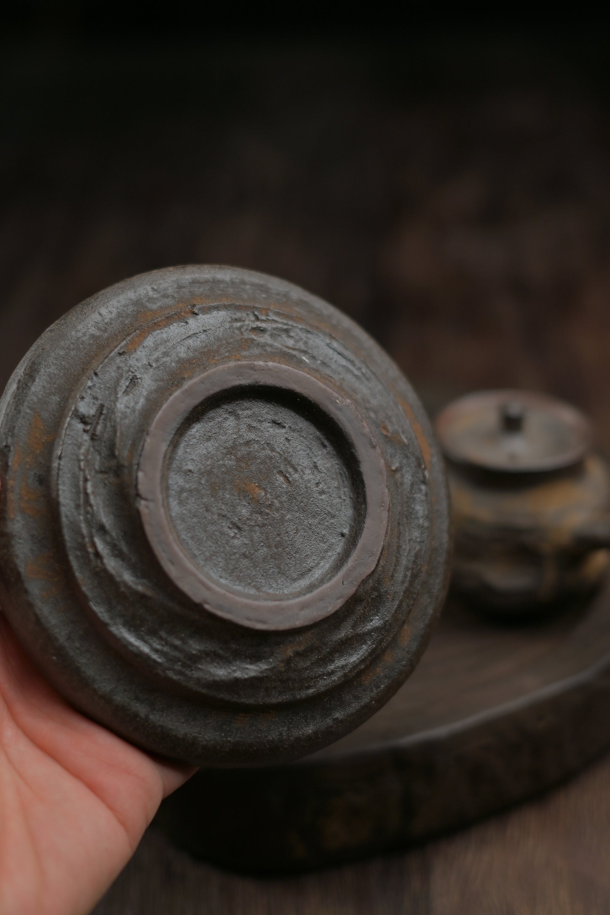 Step into the world of wabi-sabi with our handcrafted wood-fired coarse clay side-handle tea set . Each piece is a testament to the art of imperfection, where rustic textures, natural rust spots , and the raw beauty of coarse clay come together in harmony. Fired in a traditional wood kiln, this set carries the warmth of the flames and the soul of the artisan.