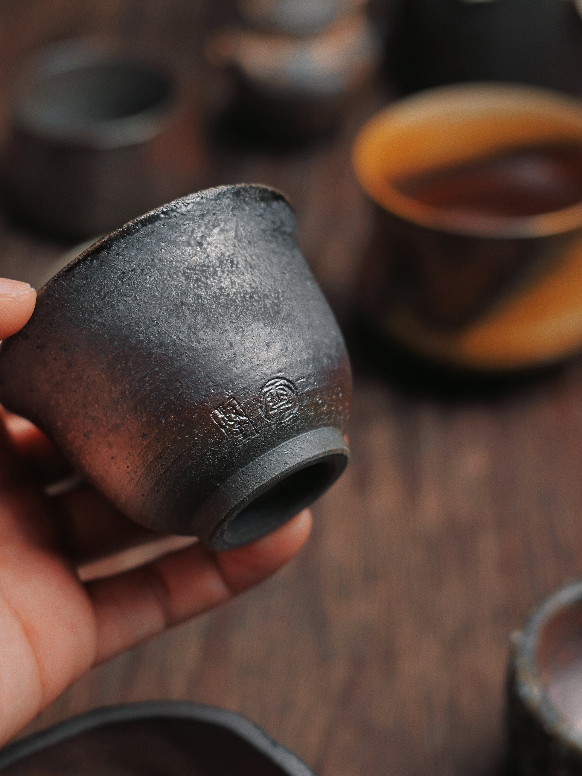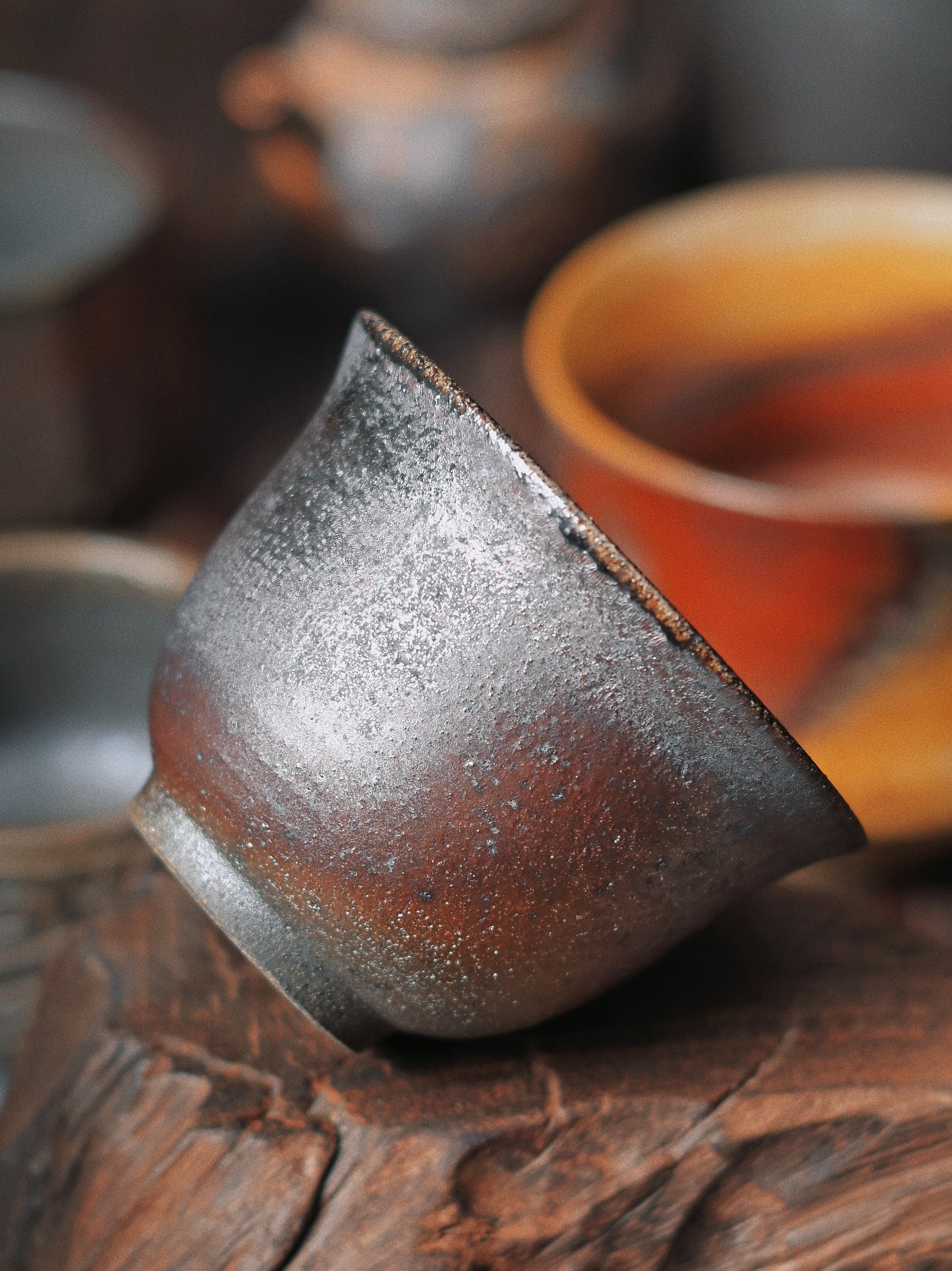 Wabi-Sabi Style Wood-fired Ash Glaze Master Cup Bizen Yaki
