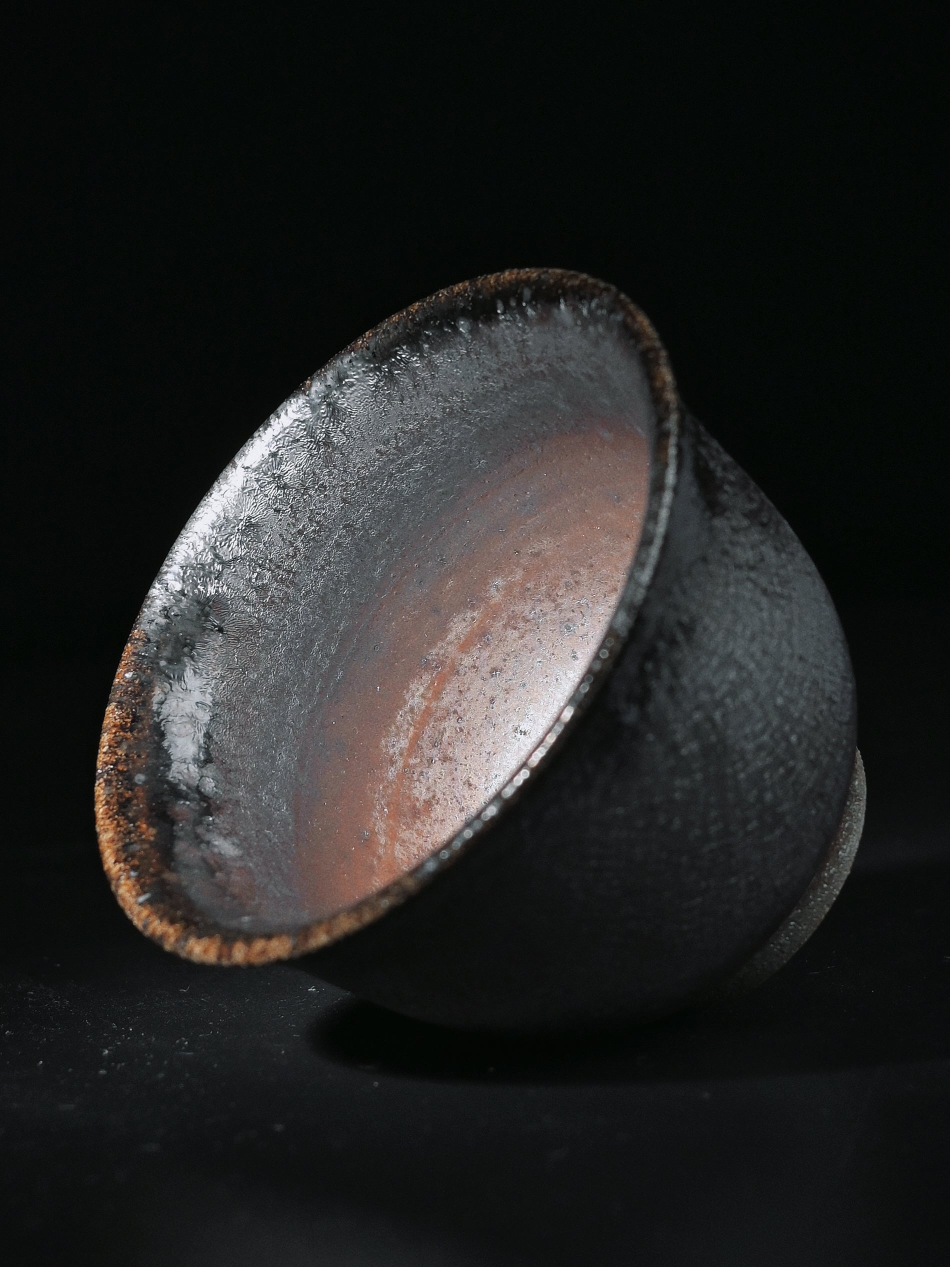 This wood-fired ash glaze master cup displays a stunning rainbow iridescence when exposed to sunlight. Over time, with regular use and care (a process known as "nurturing the cup"), the rainbow colors will become even more prominent. This is the magic of wood firing —a testament to the unpredictable beauty created by the interplay of fire, ash, and clay.